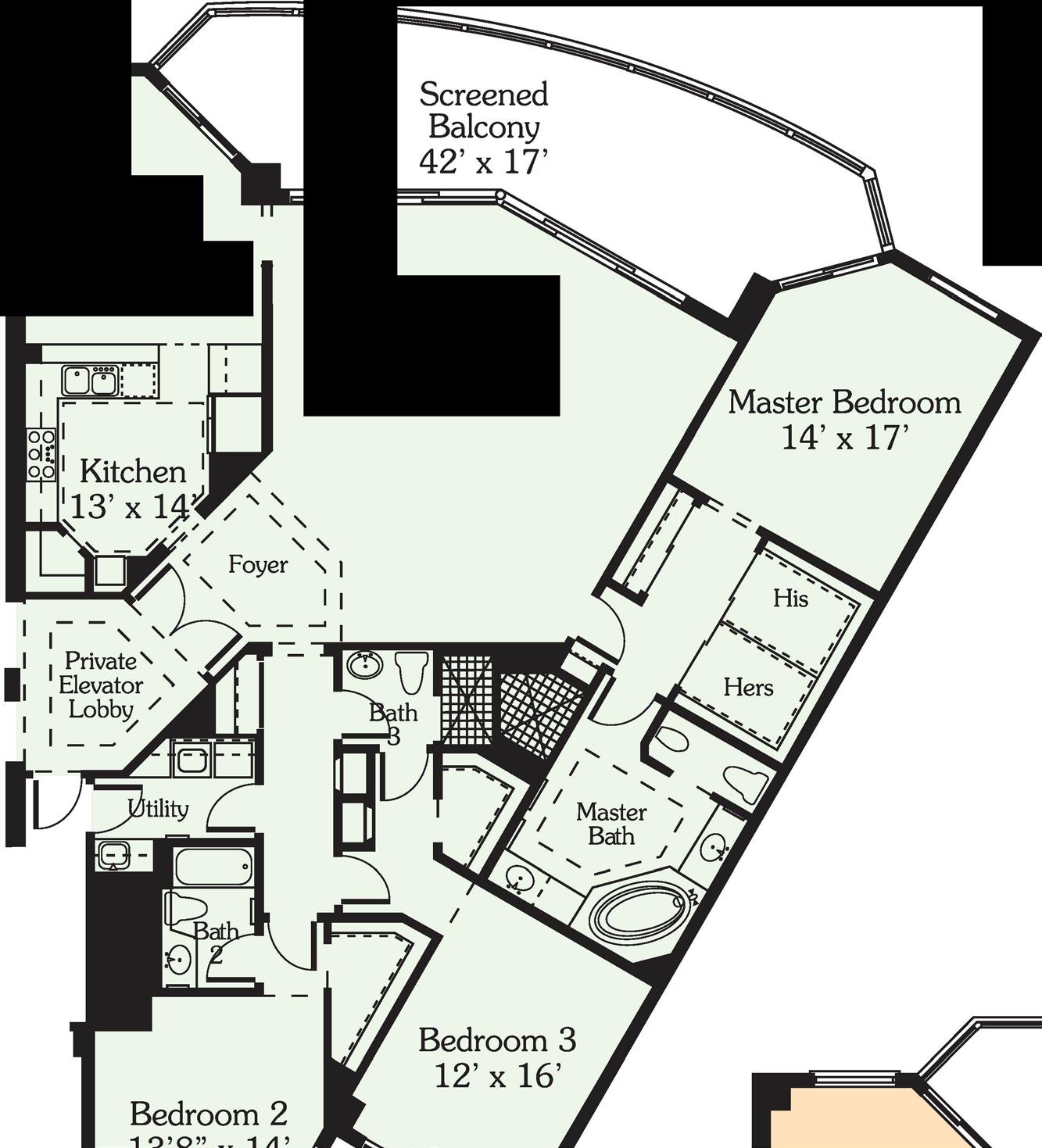 •3 High-Speed Elevators, Open to Common, A/C Lobby, Servicing 4 Residences