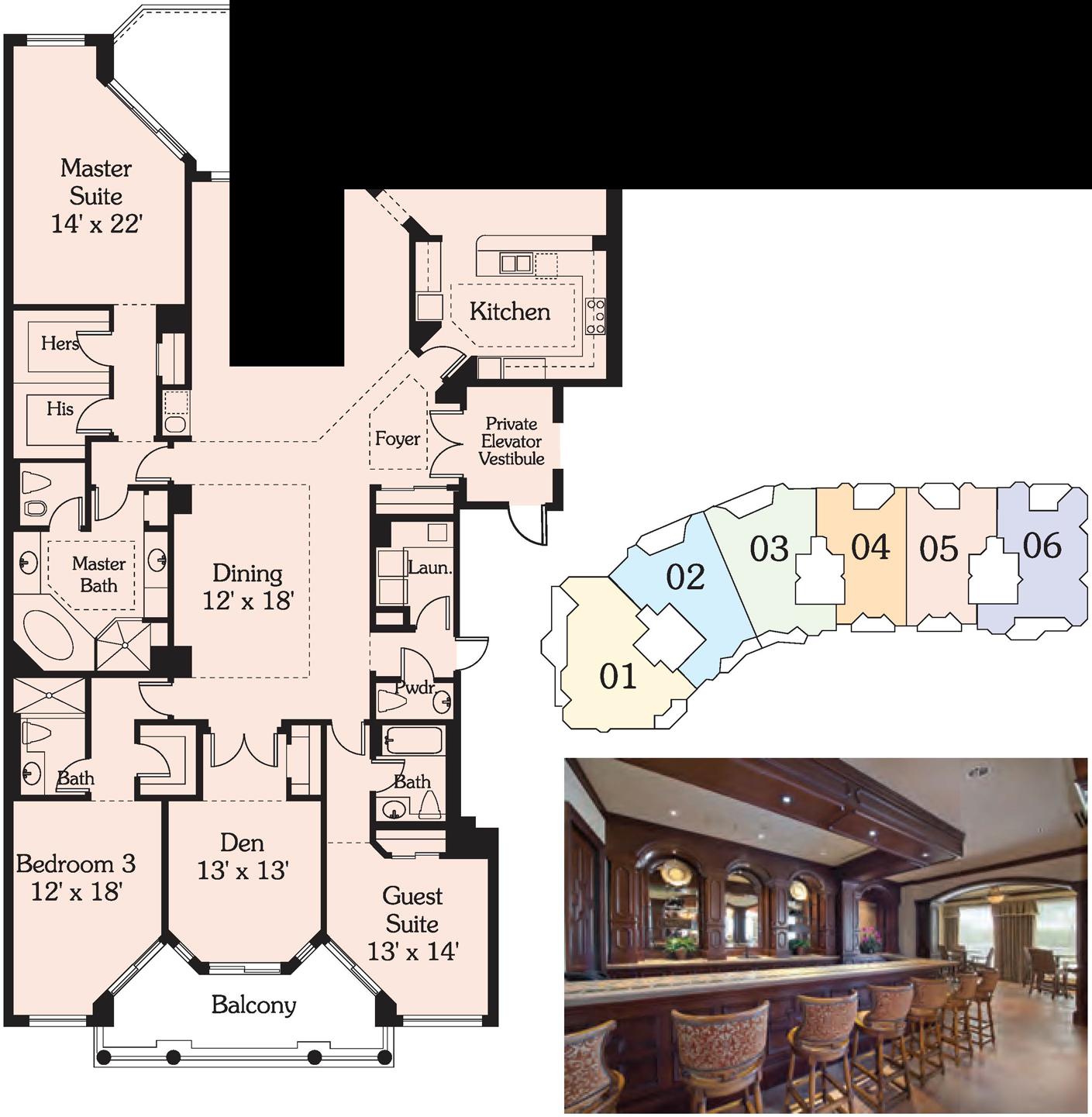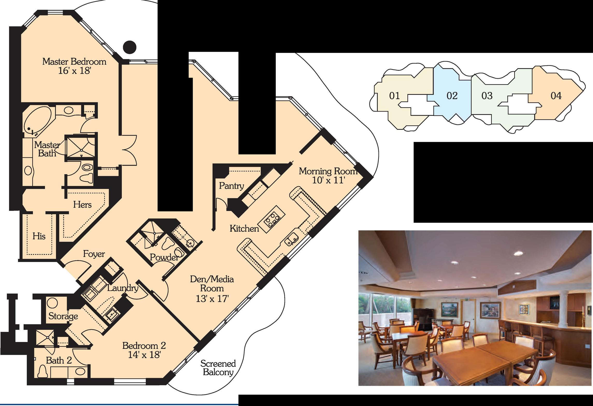 • Club/Card Room, Library, Kitchen, Bar