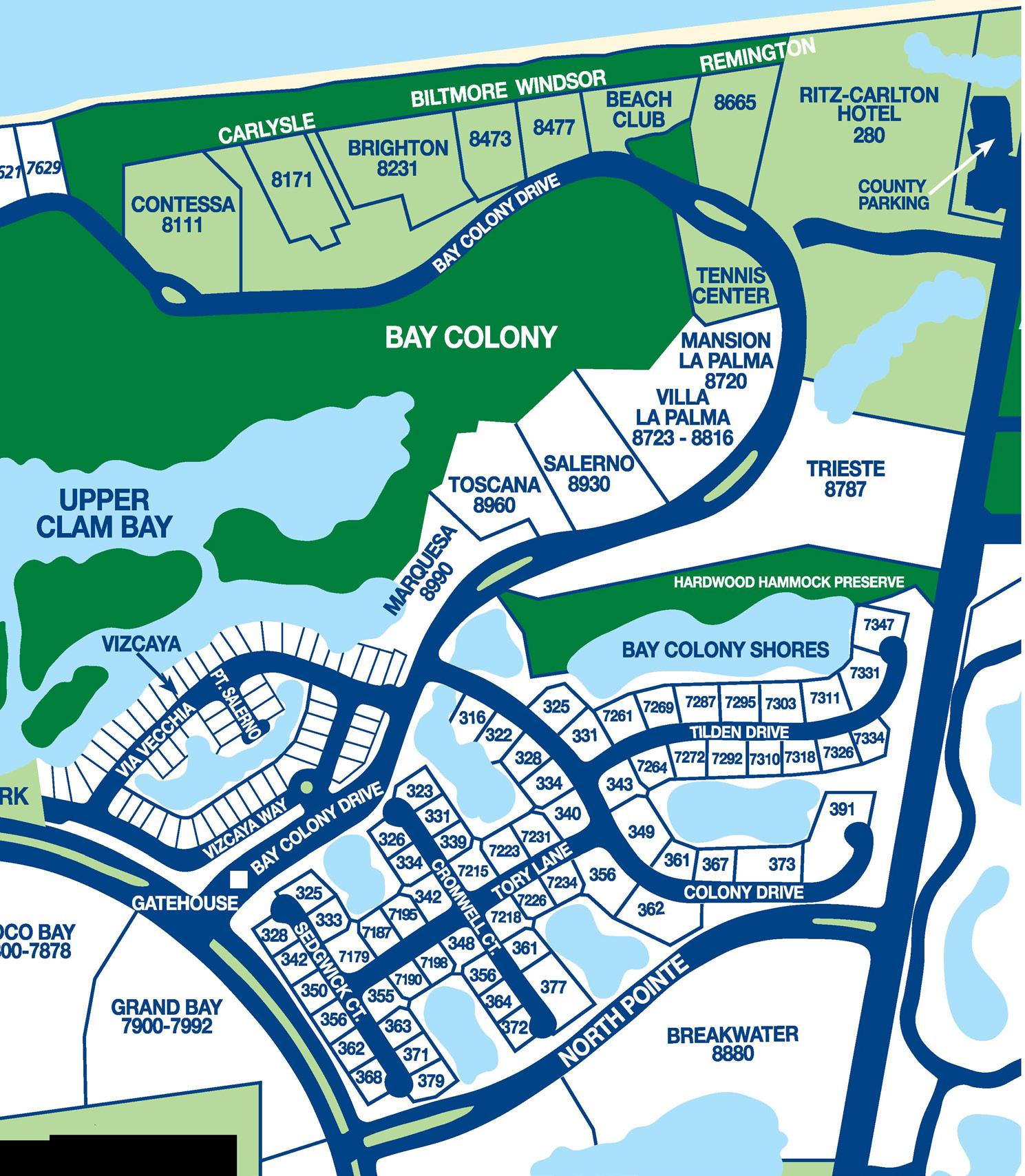 • 24- 7 Gatehouse Manned at Bay Colony Entrance