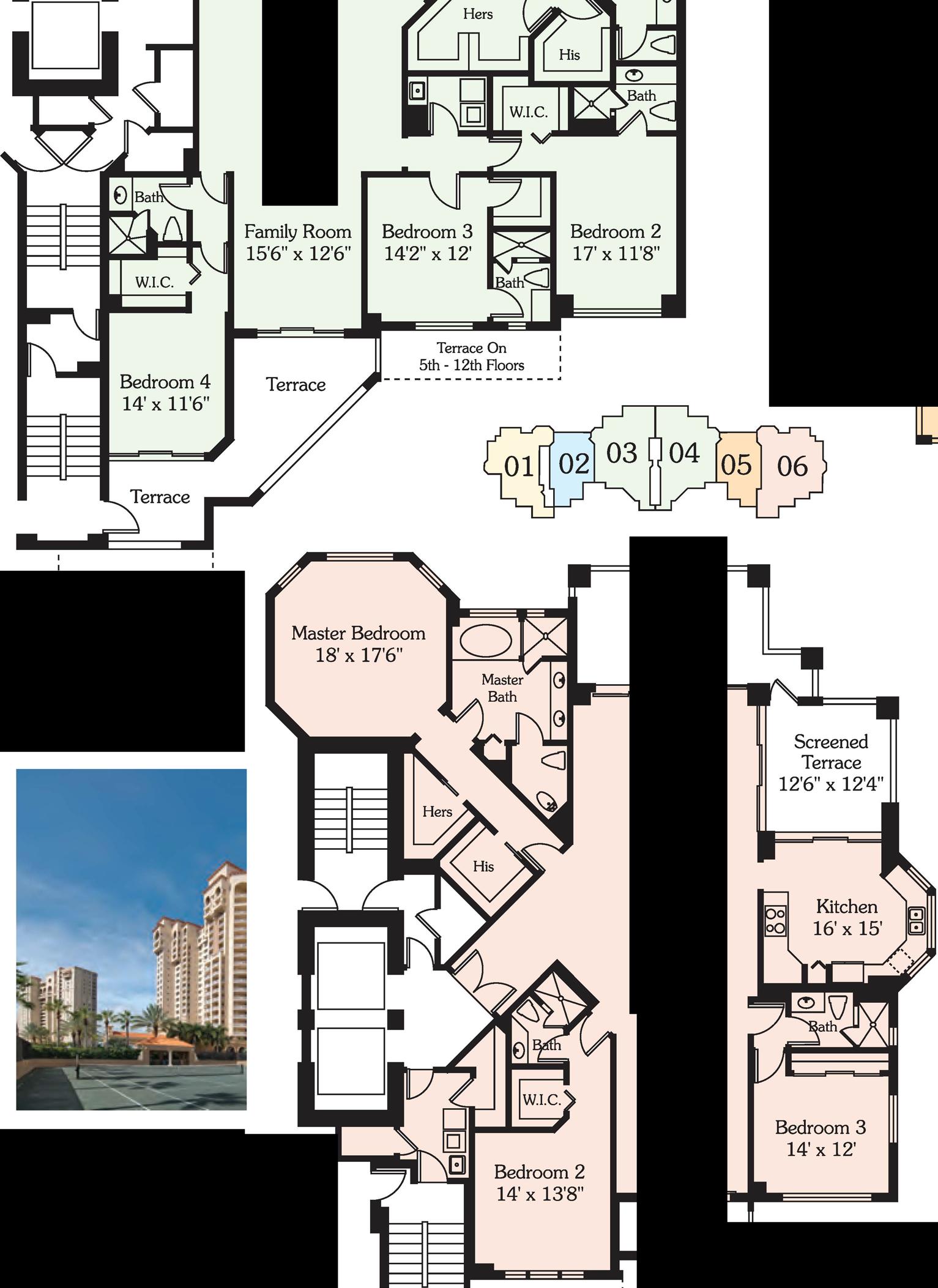 • 22 Floors, 6 Stacks, 6 Residences Per Floor