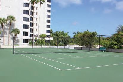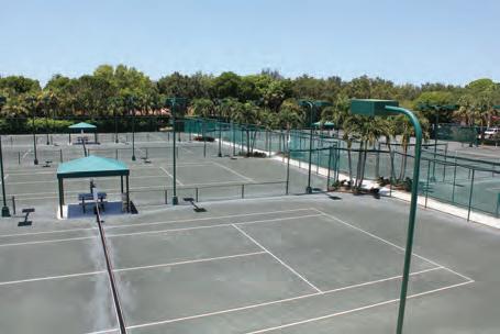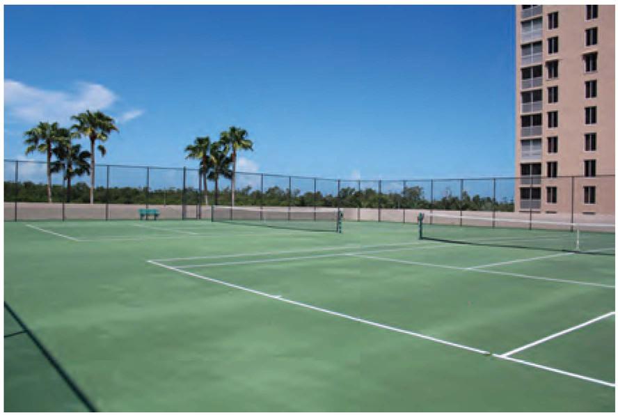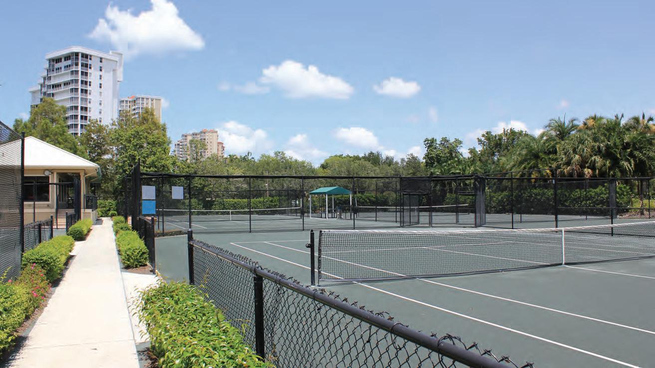 �ong the luxury high-rise condominiums and lush landscaping, sit six state-ofthe-art hydro clay courts. The sub-surface irrigation system and full-time maintenance schedule allow for optimal playing conditions year round.