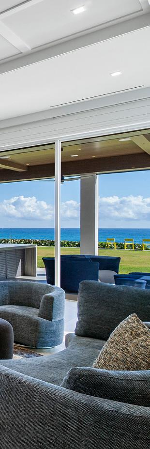 This sprawling property offers the ultimate outdoor living, a paradise unto itself. The covered loggia with built-in electric screens and shutters has a well-appointed outdoor kitchen. The resort-style heated pool and spa overlooking the beach and ocean is a relaxing oasis.