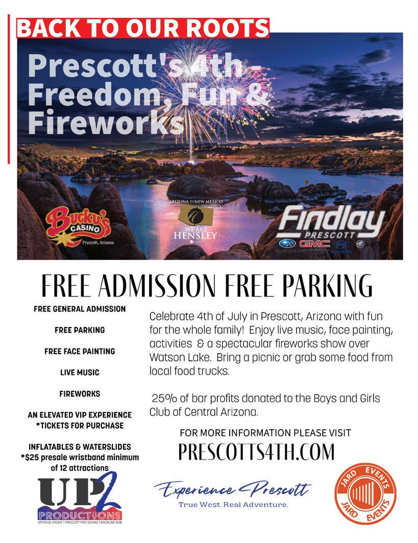Some of our biggest events and holidays are on tap in the process — the Prescott Bluegrass Festival returns June 22-23, and the World's Oldest Rodeo® ushers in the 4th of July. The Prescott Film Festival will be earlier this year, and is scheduled for July 17-20, while the Prescott Gem and Mineral Show is set for Aug. 2-4. Learn about these and more from our sister publication Prescott NOW on newsstands or online at www.prescott-now.com