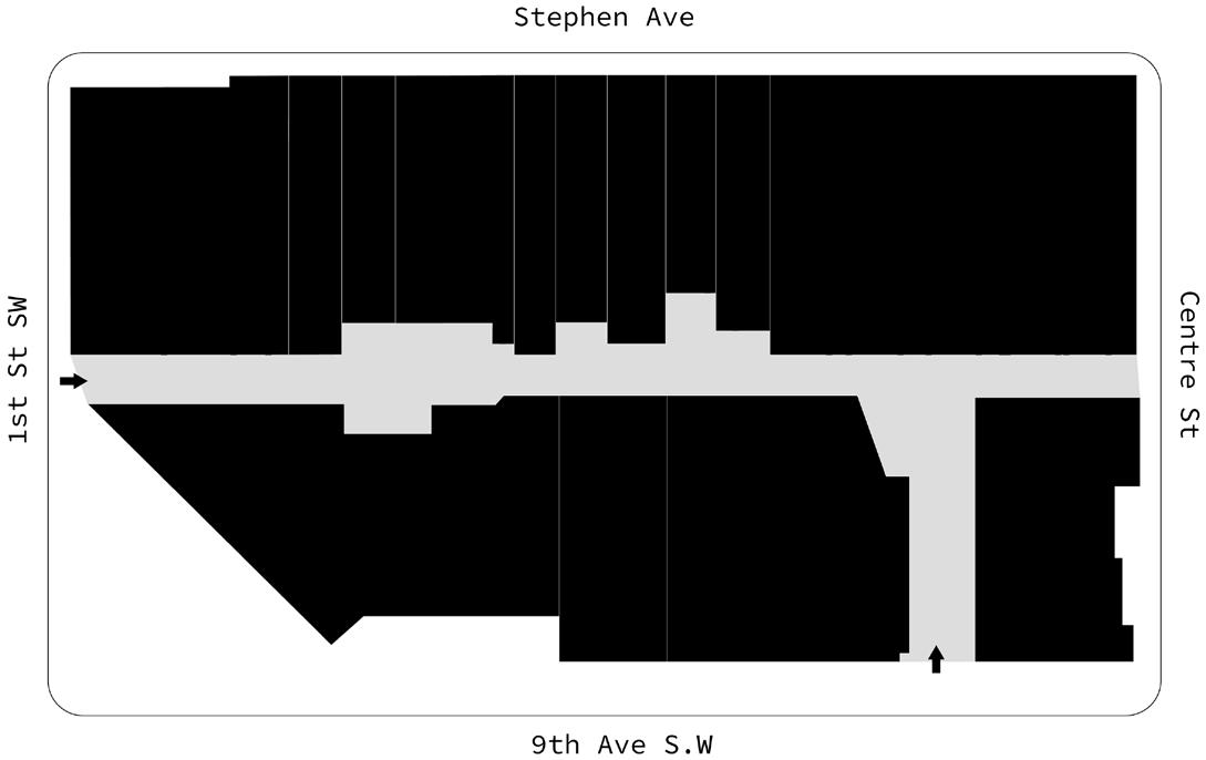 Considering the currently dominant dining program along 8 Ave, the project intends to let the dining services overflow into the back alley, to serve the nine-tofive office workers and hotel dwellers along 9 Ave within a minimized walk distance.
