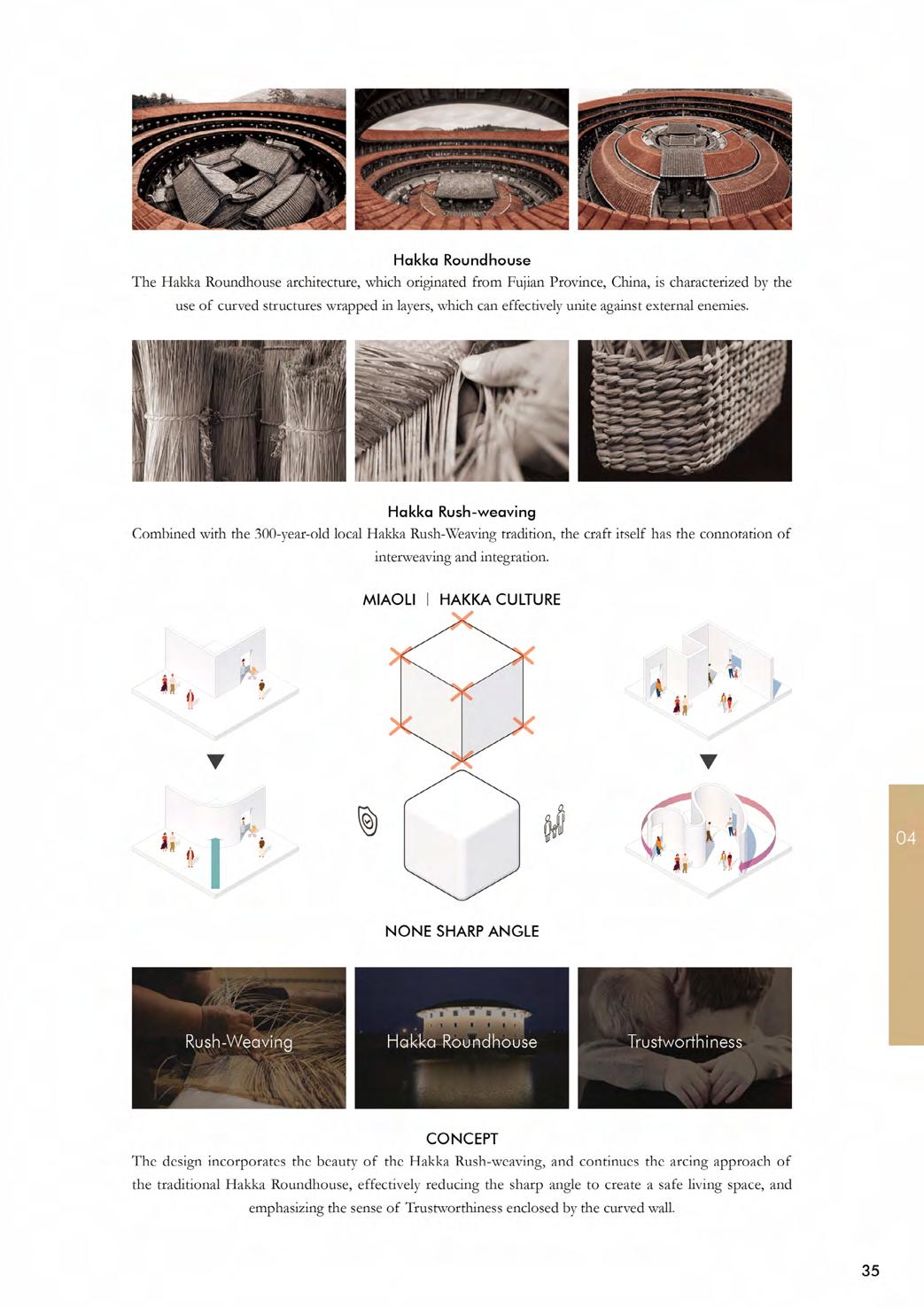 The design incorporates the beauty of the Hakka Rush-weaving, and continues the arcing approach of the traditional Hakka Roundhouse, effectively reducing the sharp angle to create a safe living space, and emphasizing the sense of Trustworthiness enclosed by the curved wall.