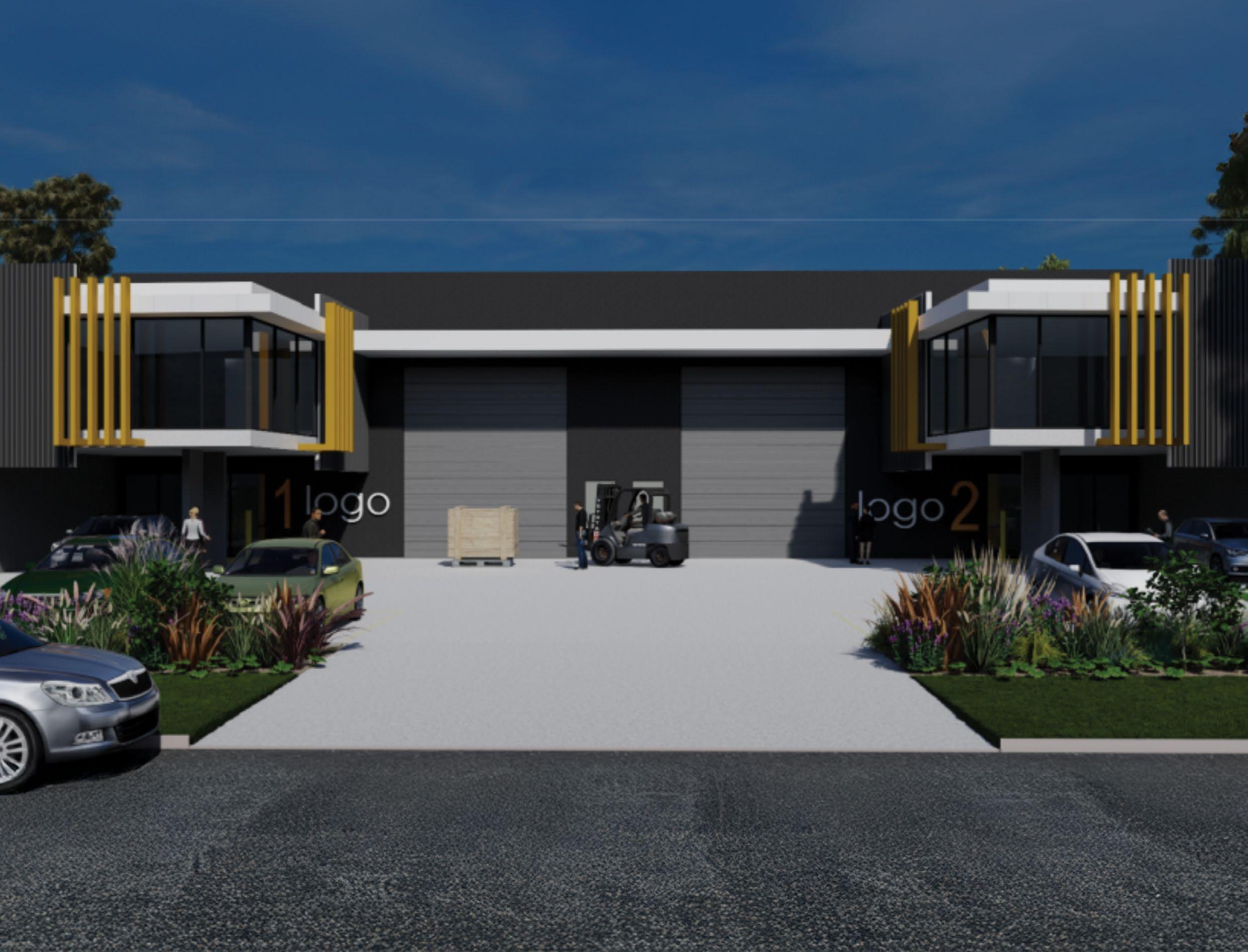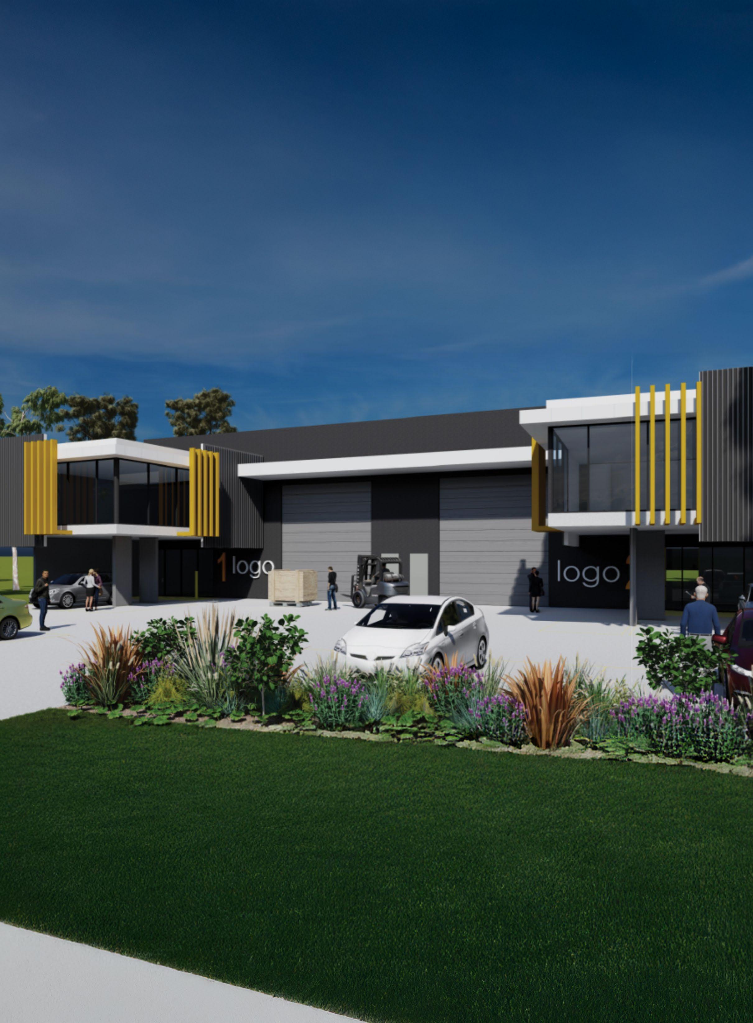 Each unit comprises a brand new tilt-slab warehouse with mezzanine office space. Featuring a high-clearance warehouse with roller door access, modern office accommodation and staff amenities. Externally, the buildings incorporate architectural façade treatments, aluminium glazing and Colorbond roofing, supported by 18 on-site car parks (including 2 PWD), dedicated loading zones, bin storage and landscaped surrounds.