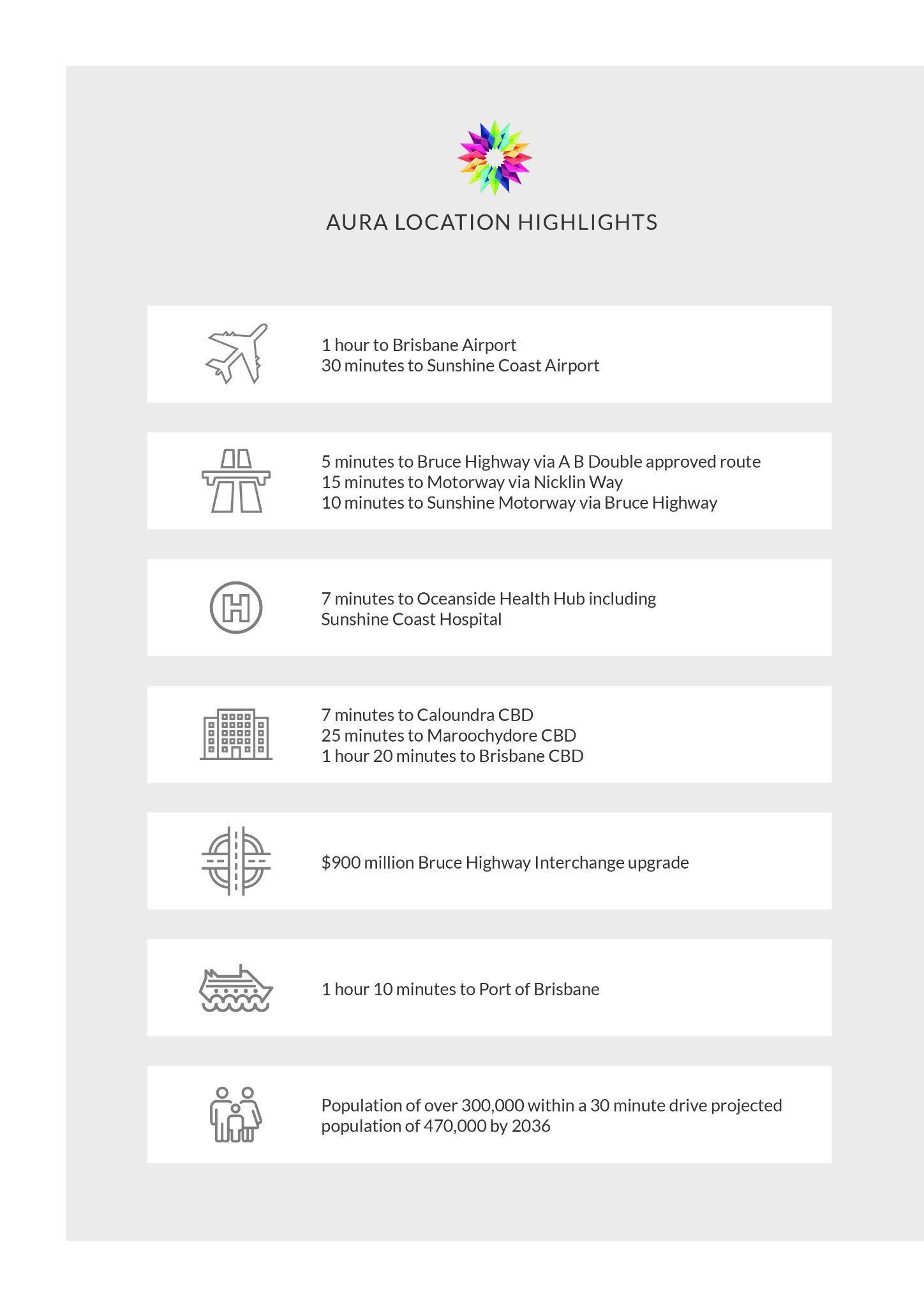 Over the past several years there has been billions of dollars’ worth of investment poured into the region from both the public and private sectors, with projects including airport expansion, the building of the public and private university hospitals and health hub, SunCentral CBD in Maroochydore, the city of Aura in Caloundra South, submarine broadband connection providing fastest connection to Asia from the east coast, Bruce Highway upgrade, multiple new housing estates and associated infrastructure including schools and sporting facilities, industrial parks and more.