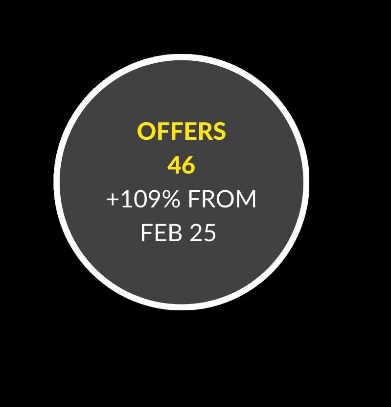 February saw strong engagement across the industrial market, with enquiries reaching 383, increasing 116 per cent year-on-year and sitting 33 per cent above the 12-month average. Offers rose sharply to 46, up 109 per cent on last year and 64 per cent above average, while inspections climbed 19 per cent year-on-year to 56, despite tracking 17 per cent below the annual average suggesting more targeted and conversion-ready enquiry.