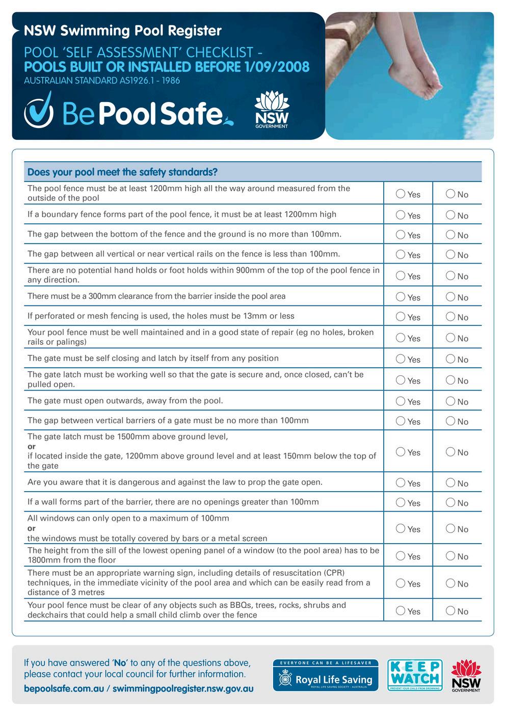 For more information, fact sheets in other languages and water safety requirements, please visit the Royal Life Saving NSW website or contact your local council