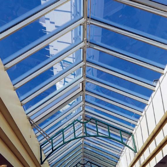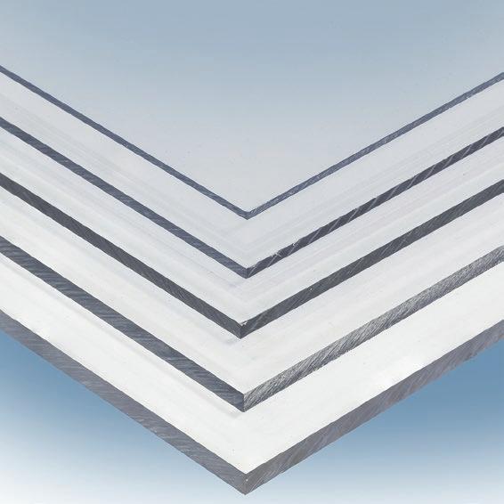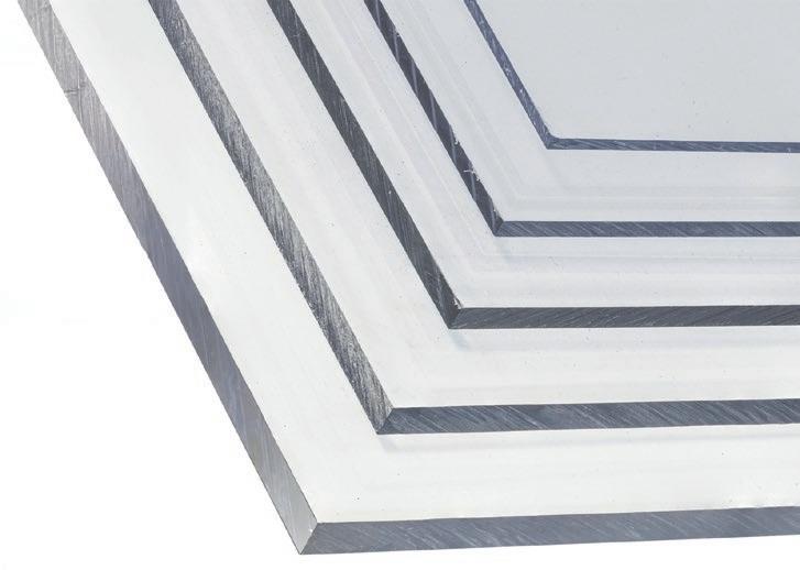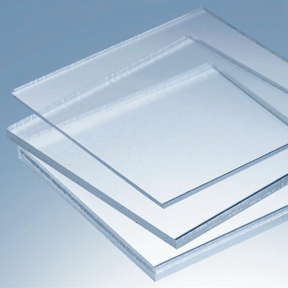 Explore our comprehensive range of solid glazing options, including polycarbonate and acrylic sheeting. Our flat polycarbonate o ers high performance and a high impact threshold. Acrylic combines a high gloss finish with good optical clarity and excellent weatherability. Both materials are suitable for a wide variety of interior and exterior design applications.