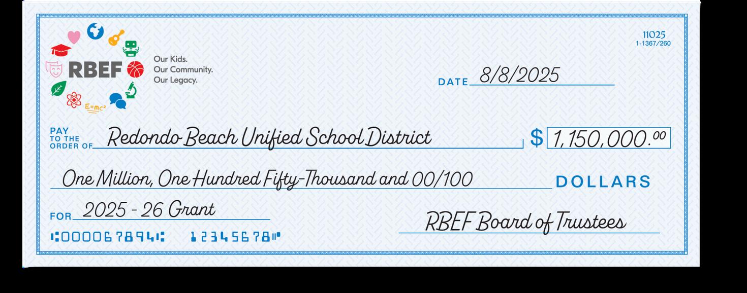 Established in 1991, the Redondo Beach Educational Foundation (RBEF) is a 501(c)(3) nonprofit organization whose mission is to inspire our community to invest in Redondo Beach public schools so that every student can develop knowledge and skills that go beyond what public funding alone would achieve.