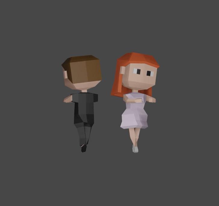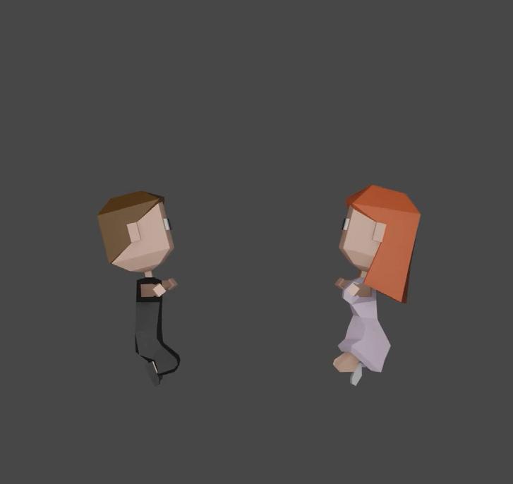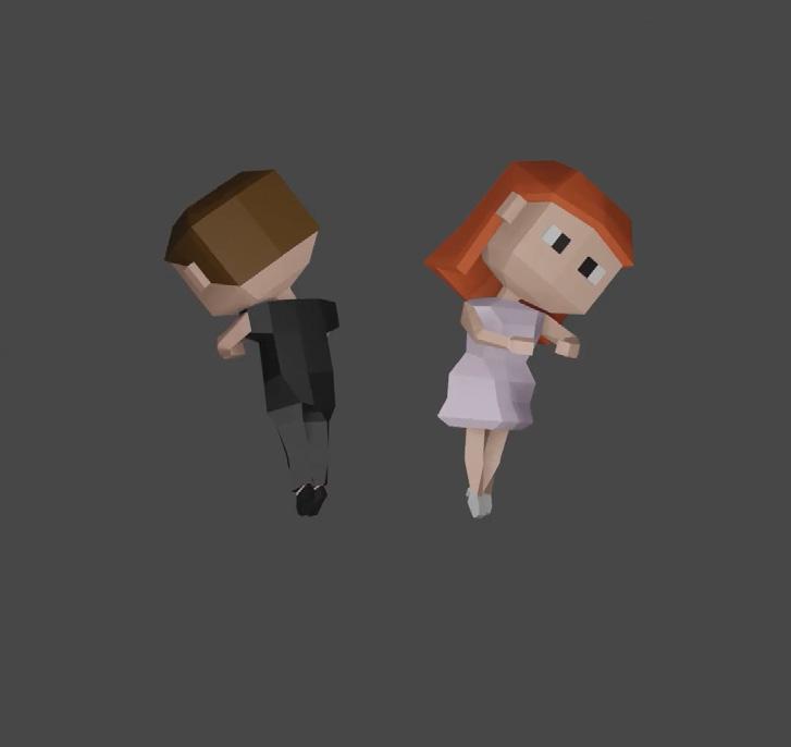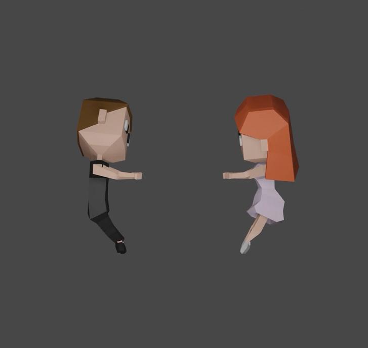 basis for exploring different movements. I created the digital dances using avatars based on myself and my boyfriend, where I represented us as simplified human beings, but doing things that are impossible in reality.