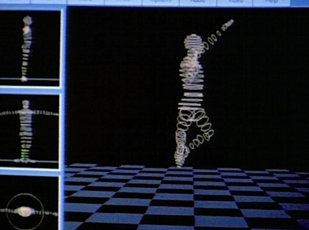 In a first attempt at experimenting with the relationship between dance and the computer, I created a virtual dance piece, Virtual Dancing.
