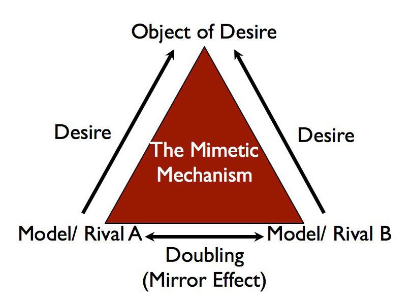“that human desire is not a linear process, as often thought, whereby a person autonomously desires an inherently desirable object. Rather, we desire according to the desire of the other. We rely on mediators or models to help us understand who and what to desire.” [30]