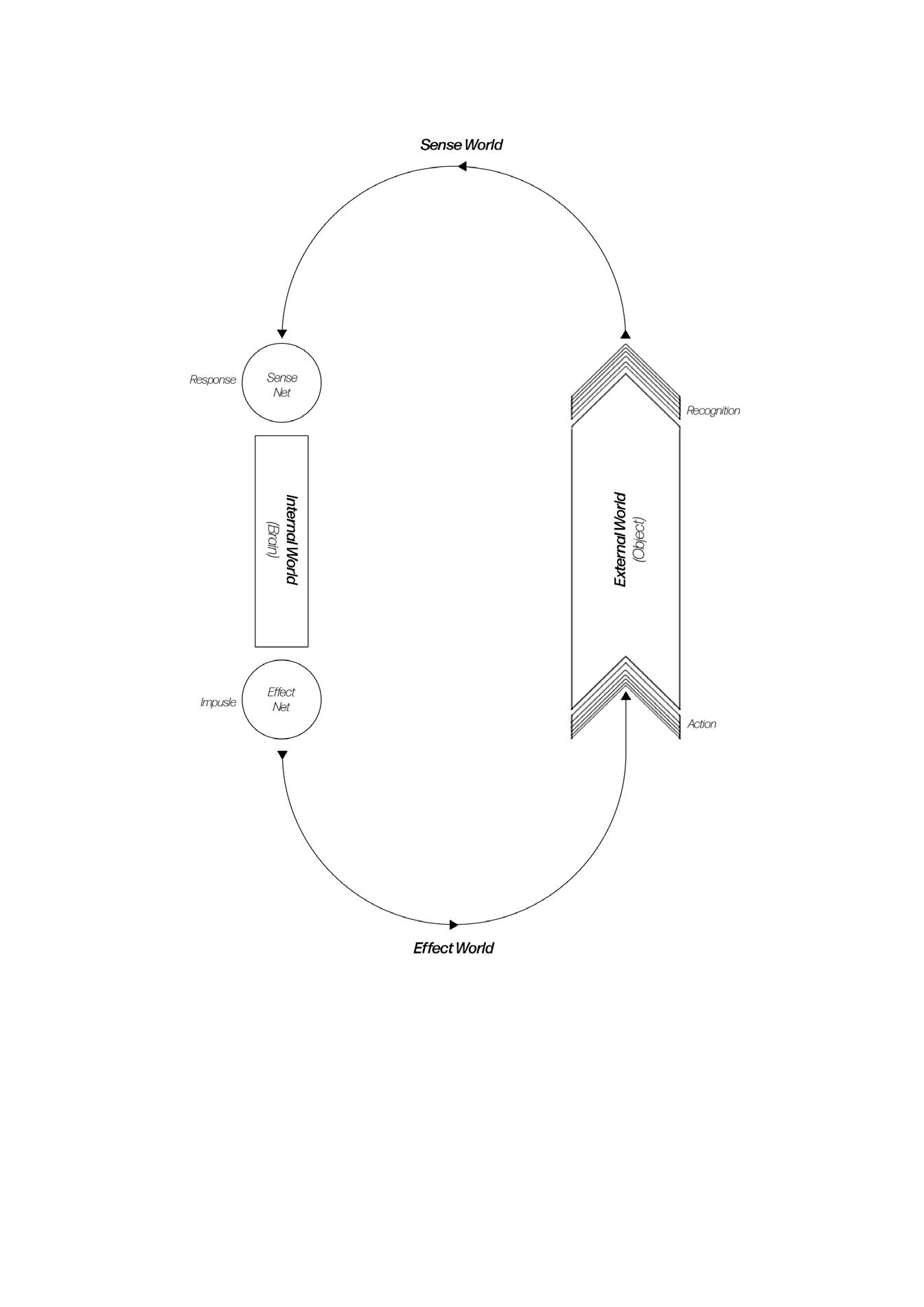 The Umwelten, as described by Jakob von Uexhill - its ‘creator’ - is a combination of two separate Welt’s; the Merkwelt (the preceptor world) and the Wirkwelt (the effector world)These two worlds facilitate what von Uexhill termed Functional Cycles, feedback loops of sensing and effecting with the world around us through what we are able to sense and our physical abilities to act upon these stimuli. [8]