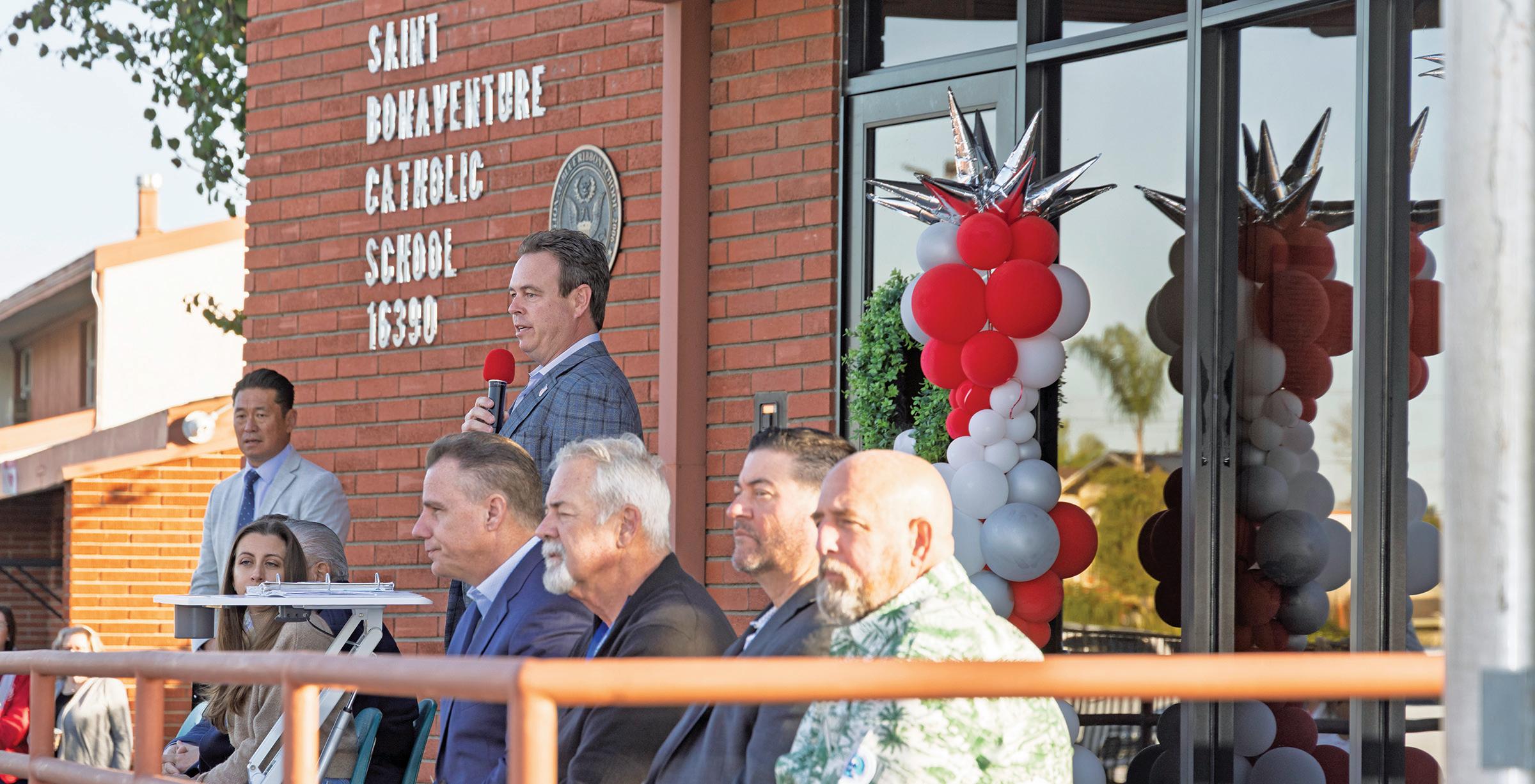HUNTINGTON BEACH MAYOR CASEY MCKEON ADDRESSES STUDENTS DURING MORNING ASSEMBLY AT ST. BONAVENTURE CATHOLIC SCHOOL HELD ON JAN. 29. PHOTOS BY ALAN WENDELL/DIOCESE OF ORANGE