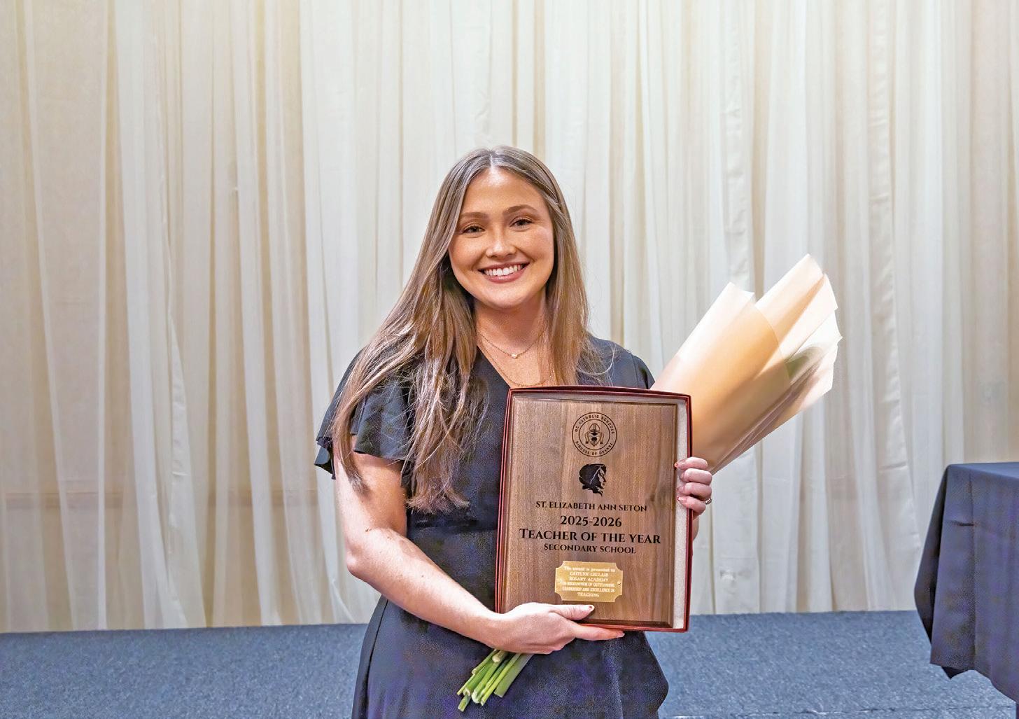 Rosary Academy’s social studies teacher Caitlyn LeClair was honored as the Secondary Teacher of the Year winner. LeClair, in her fourth year at Rosary, started her Catholic school tenure as a