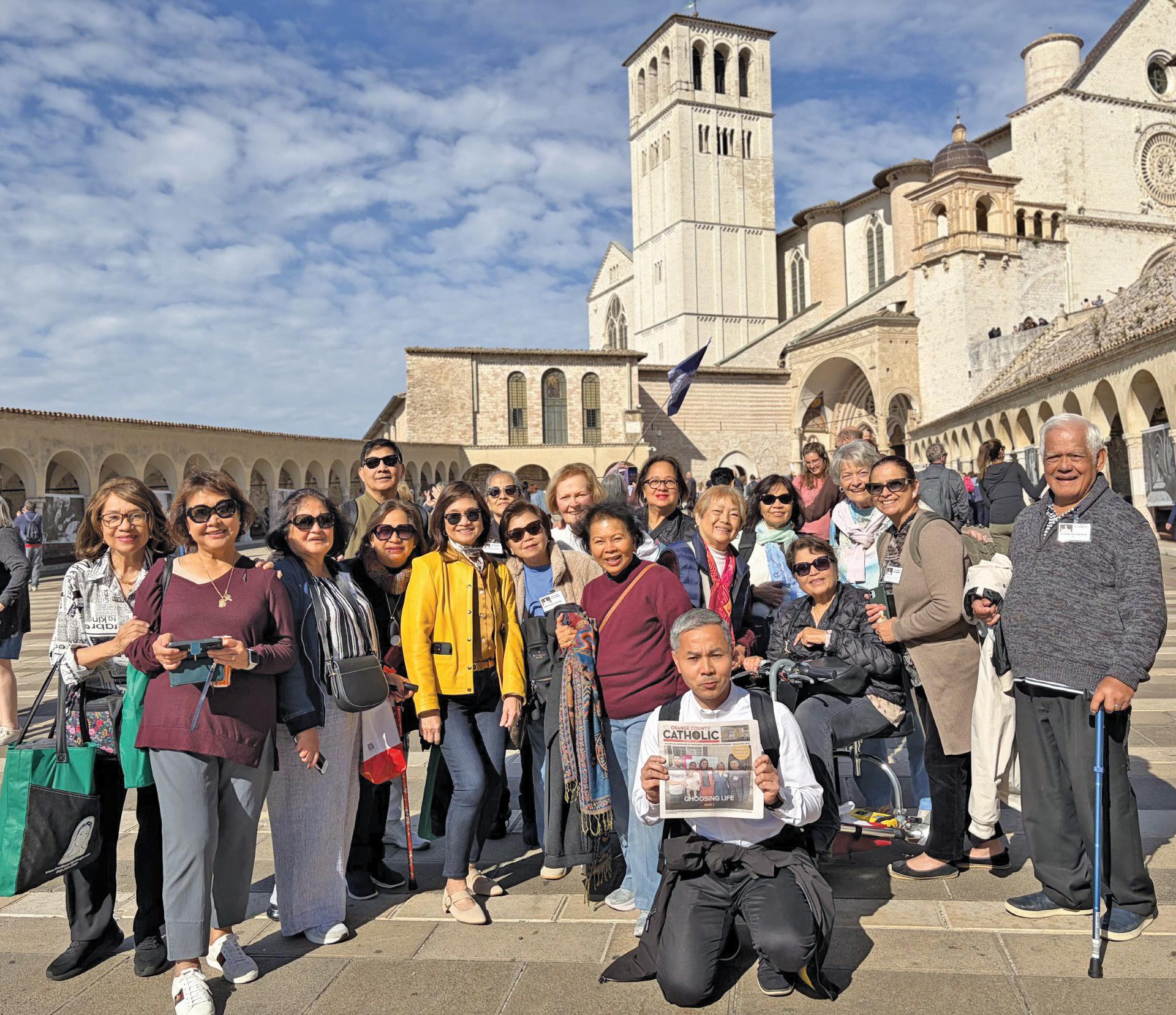 Rev. Tuan Pham, Parochial Administrator of St. Elizabeth Ann Seton Church in Irvine, led a pilgrimage group from several South County parishes to the Basilica of St. Francis in Assisi, which is the final resting place of newly canonized St. Carlo Acutis. Parishioners from St. Elizabeth Ann Seton, St. Kilian, San Francisco Solano and St. John Neumann gathered on the middle level of the three-church, three level basilica. The first stone of the basilica was laid by Pope Gregory IX in 1228, the day following his canonization of St. Francis.