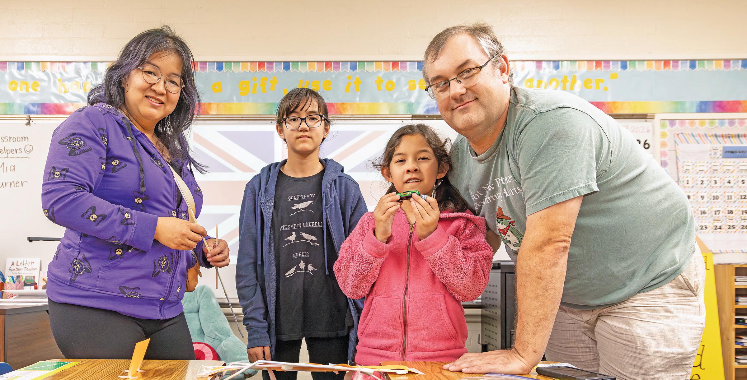 THE GARDNER FAMILY PAUSES FOR A PHOTO DURING STEM NIGHT AT ST. CECILIA CATHOLIC SCHOOL.