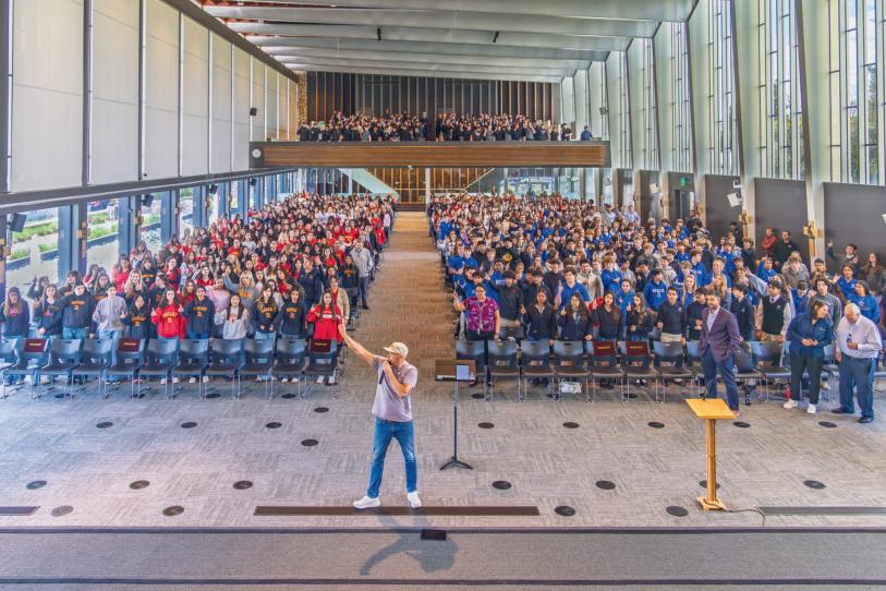 Students from across the diocese gathered at Servite High School for a day of leadership.