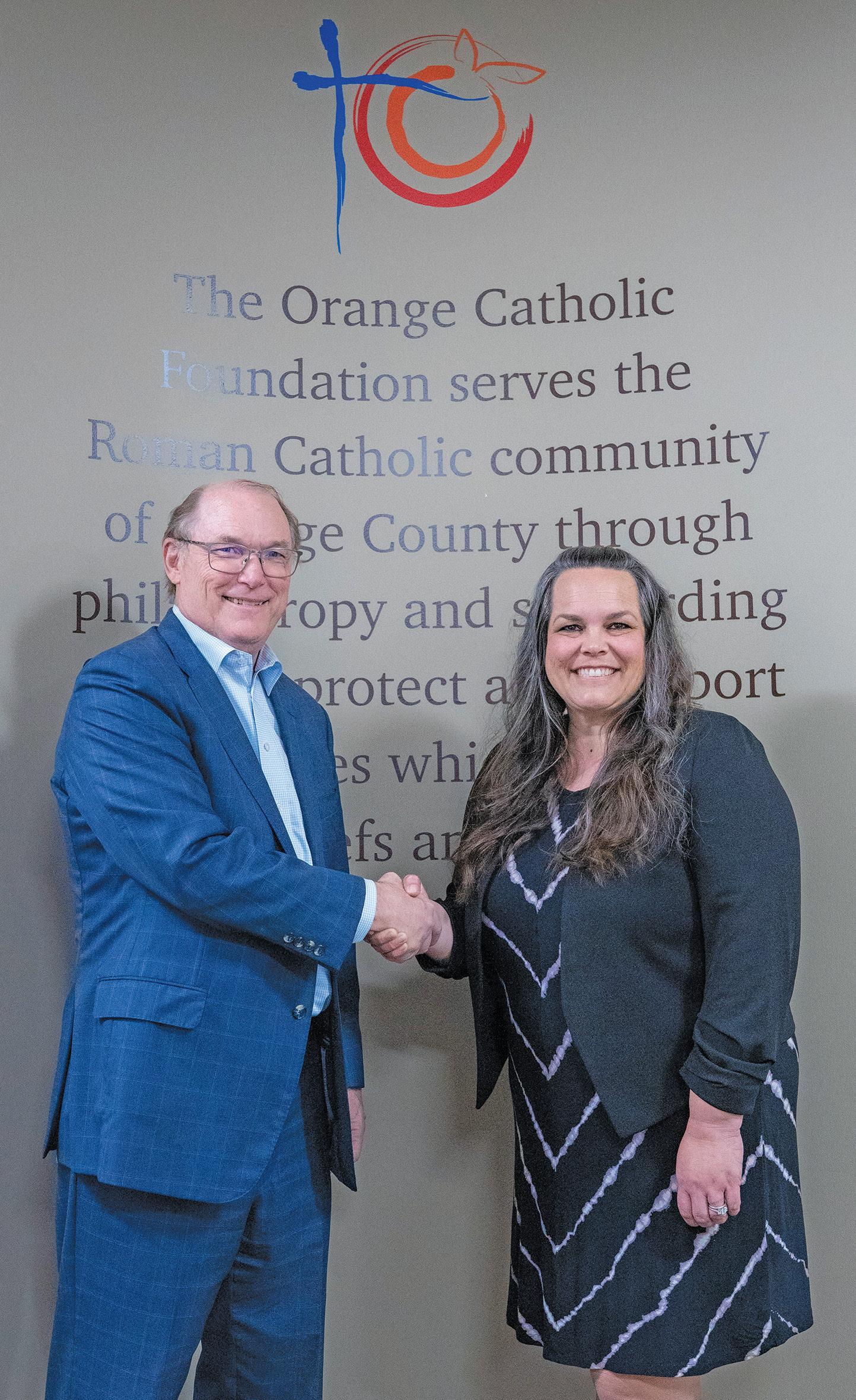 KATHLEEN HURTT WILL ASSUME THE ROLE OF THE ORANGE CATHOLIC FOUNDATION’S (OCF) EXECUTIVE DIRECTOR, AS STEVE CAMERON TRANSITIONS FROM EXECUTIVE DIRECTOR INTO BECOMING A MEMBER OF THE FOUNDATION’S BOARD OF DIRECTORS. PHOTO COURTESY OF OCF