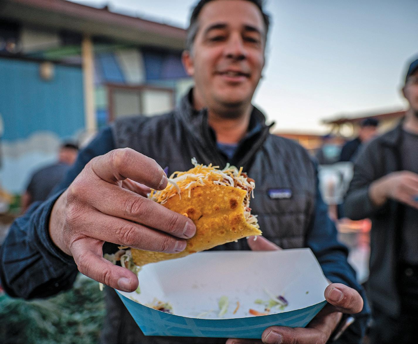 KNIGHTS OF COLUMBUS MEMBER JUSTIN HILL OF COSTA MESA SHOWS A FISH TACO HE SAMPLED DURING THE FISH FRY EVENT HELD ON FEB. 20 AT ST. JOHN THE BAPTIST PARISH IN COSTA MESA. PHOTO BY JUANITO HOLANDEZ JR./ DIOCESE OF ORANGE