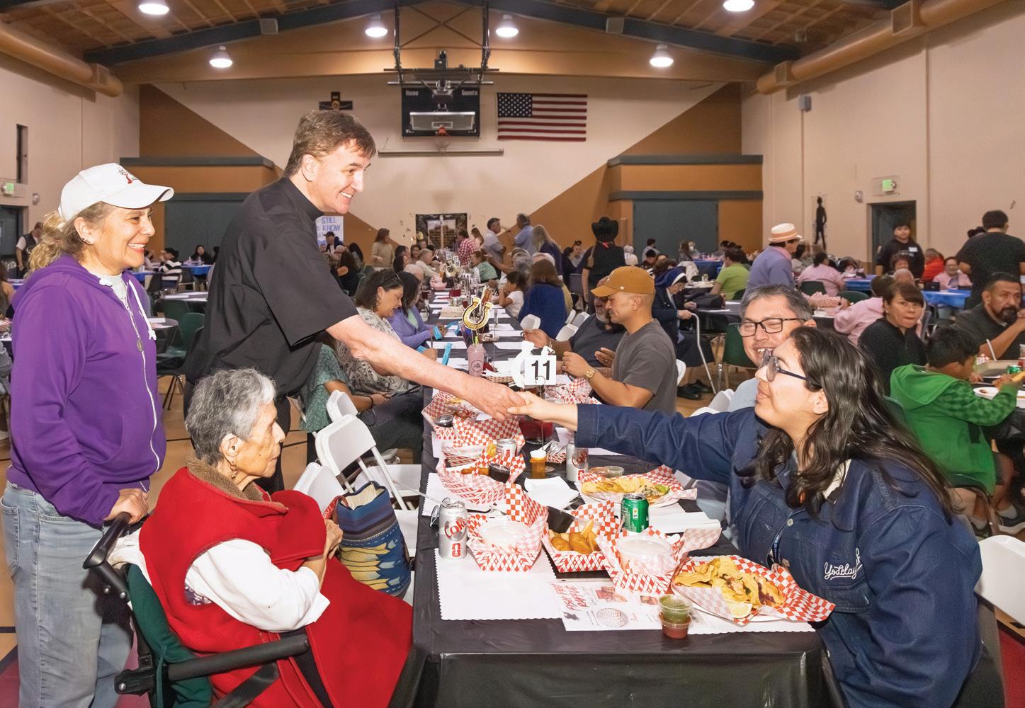 Dentro del Centro Familiar y Juvenil, los estudiantes de octavo grado se movían apresuradamente de un lado a otro, decorando el lugar para las festividades de esa noche, cuya temática era el estilo del Oeste. Los feligreses y los simpatizantes de la escuela saludaban a viejos amigos y hacían nuevos conocidos, mientras se preparaban para degustar una variedad de opciones del menú, que incluían sopa de almejas (clam chowder), ceviche con chips, tacos de papa y el clásico pescado con papas fritas.