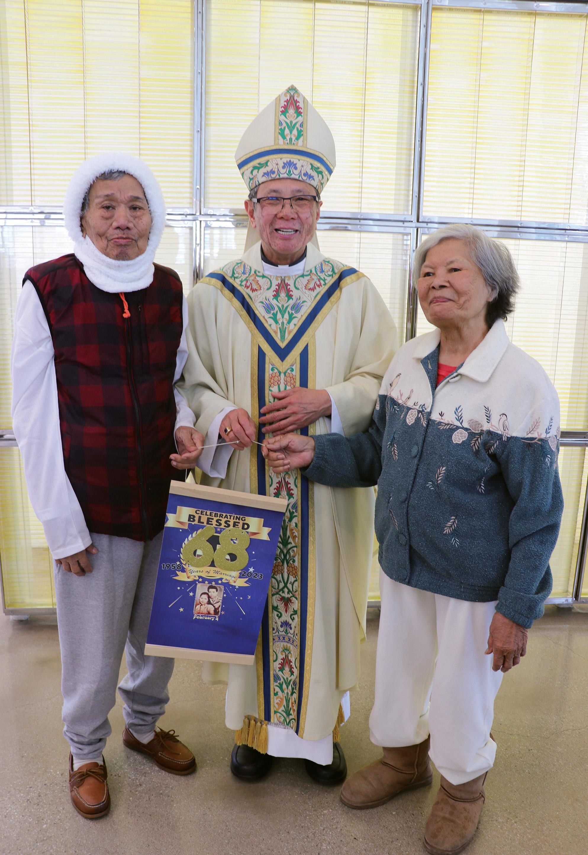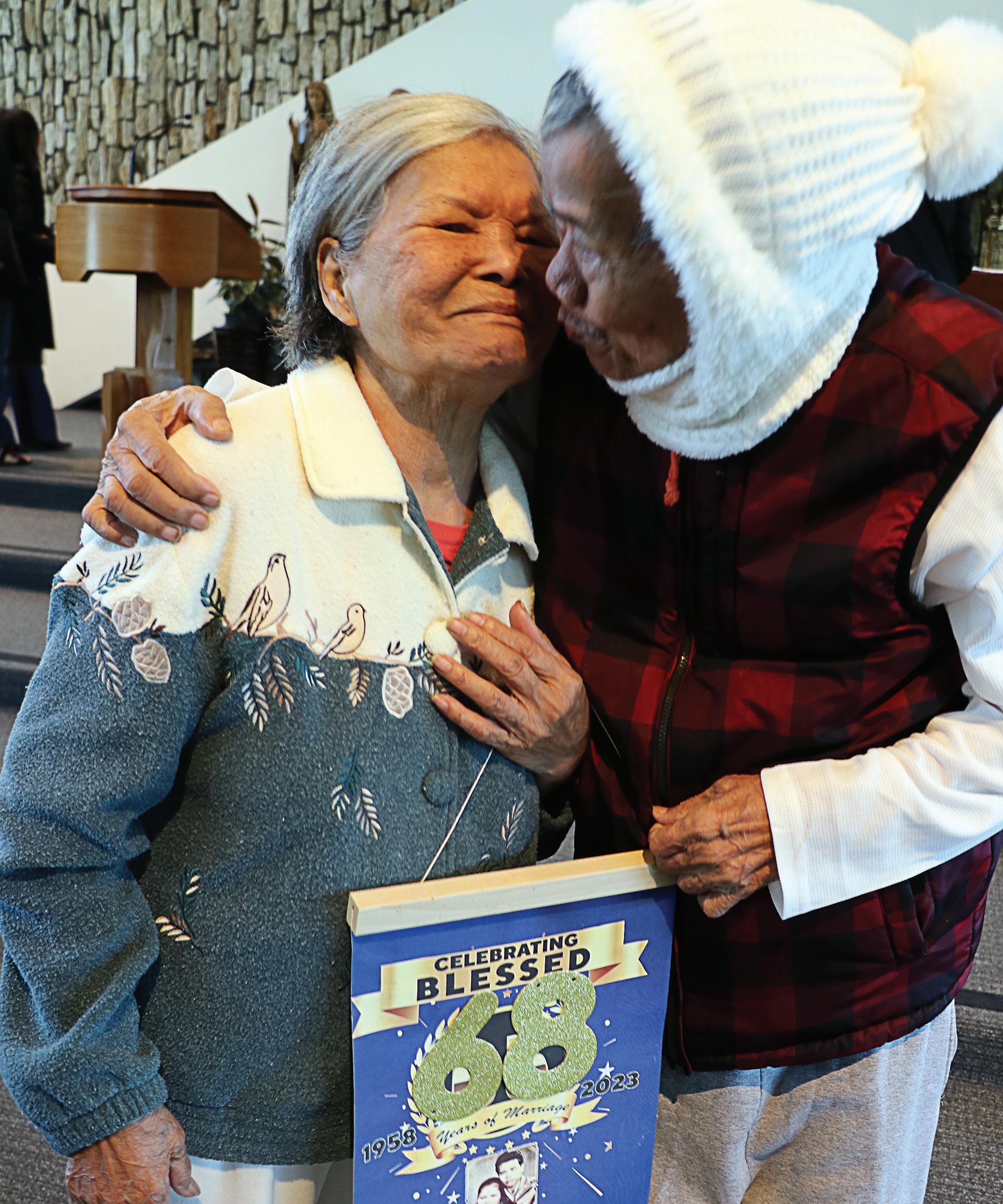 La razón fue celebrar a un hombre sentado en su silla de ruedas en la primera fila y a su esposa: Francisco y Rosalinda Santos, un matrimonio filipino-americano que cumplió 68 años de matrimonio.