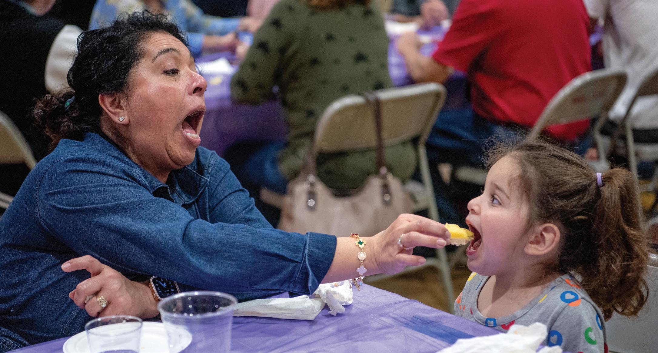 LUCY MEDINA, DE ALISO VIEJO, ALIMENTA A SU NIETA, LUCY CHOATE, DE 2 AÑOS, DURANTE UNA COMIDA DE PESCADO EN LA BASÍLICA DE LA MISIÓN EN SAN JUAN CAPISTRANO. FOTO DE JEFF ANTENORE