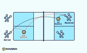 Before any player can hit a shot out of the air, the ball must bounce once on each side (known as the 'double bounce rule'). So. if your partner is serving and you start at the kitchen, you’re in a dangerous position Why? Because the returning team can hit a shot right at you, and if you react with a volley, that’s a fault. You lose the point.