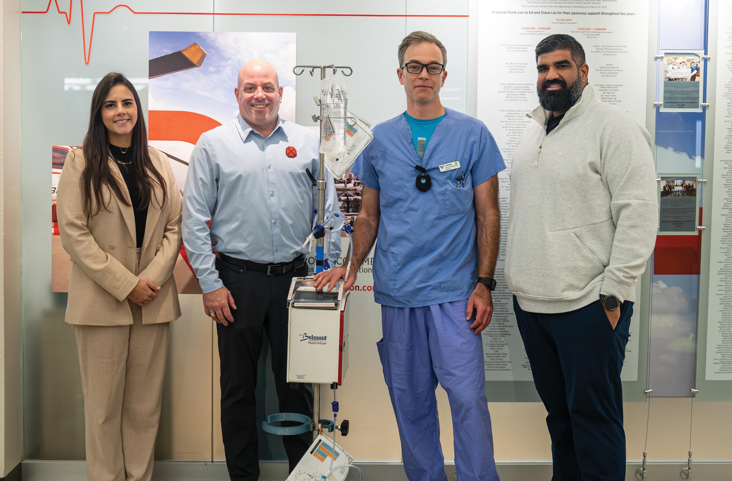 The Belmont Rapid Infuser, supported by generous donors like CN, helps trauma teams deliver life-saving care in critical moments. Here, CN representatives are seen with RCH staff Gary Kainth and James Beaudoin.