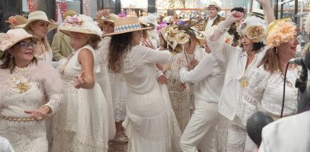 Siguiendo la tradición, socios y sus invitados regresaron simbólicamente de Las Américas tras “hacer fortuna”, presumiendo con humor y elegancia de su éxito y prosperidad. Vestidos de blanco, tal y como manda la tradición, los asistentes llenaron los salones del Club de ambiente festivo y espíritu carnavalero.
