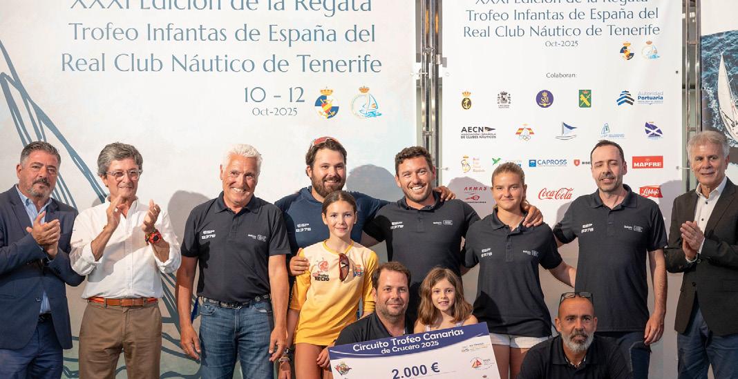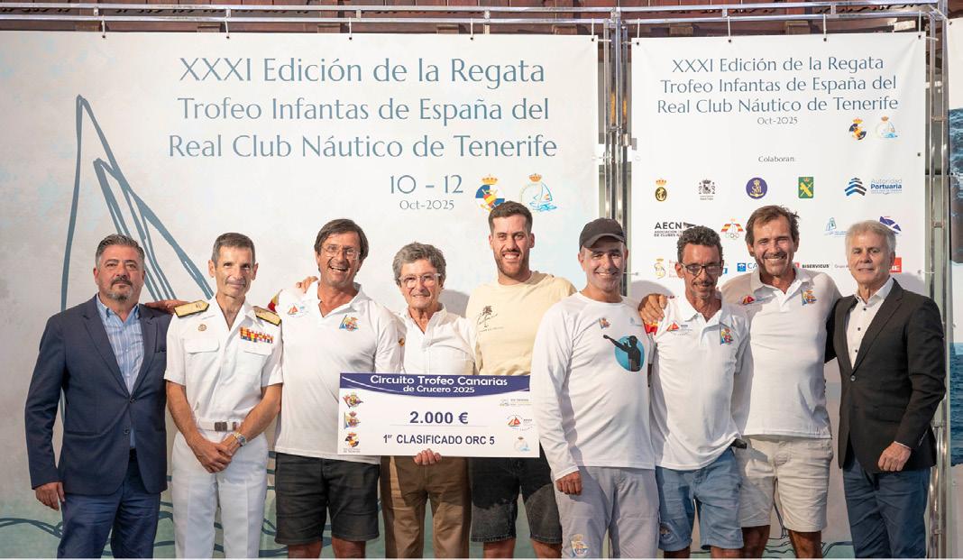 Triunfos destacados: ‘Butxaca’, de Joaquín Blanco (Real Club Náutico de Gran Canaria), se proclamó campeón absoluto del Trofeo Infantas y vencedor en la clase ORC 0-3. En ORC 4, el triunfo fue para ‘Maeña 9’, de Andrés Monje (RCNT), firmando además un triplete para la flota tinerfeña. En ORC 5, ‘Alzenit’, de Miguel Cantero (RCNGC), brilló con tres victorias de tres pruebas disputadas, escoltado en el podio por ‘Luna Doce’, de Francisco Ricart (RCNGC), y ‘Susana XXIII’, de Antonio José Arderius (RCNT). El ‘Solum Tenerife Aedas Homes’, de Lucio Pérez (RCNT), además de su segundo puesto en la general del Trofeo Infantas, se proclamó campeón absoluto del Circuito Canario de Cruceros 2025.