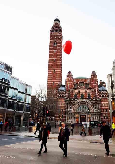 We received a letter recently from a lady in Ireland who said how much she enjoyed receiving the newsletter from the Friends with news of the Cathedral. It occurred to me that we rarely show pictures of the Cathedral as it now is – much has changed – and so I took my camera in on a sunny Friday afternoon. What a pity that a picture cannot convey the scent of the lilies in the Easter flowers. The heart image part of an art installation project in London in February; a love-in for the city, designed by Anya Hindmarsh.
