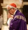 Cardinal Vincent pauses before blessing the ashes for imposition at Mass to mark the beginning of Lent