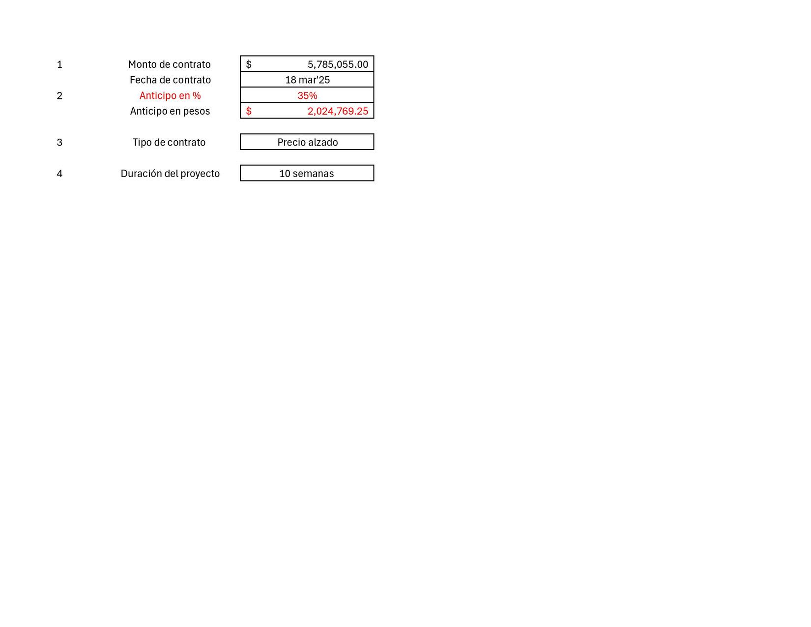 According to SCENARIO 2, 4 estimates were approved, according to the progress agreed upon of 25, 50, 75 and 90%, with a 10% final payment and amortization in accordance with the Advance Payment Percentage.