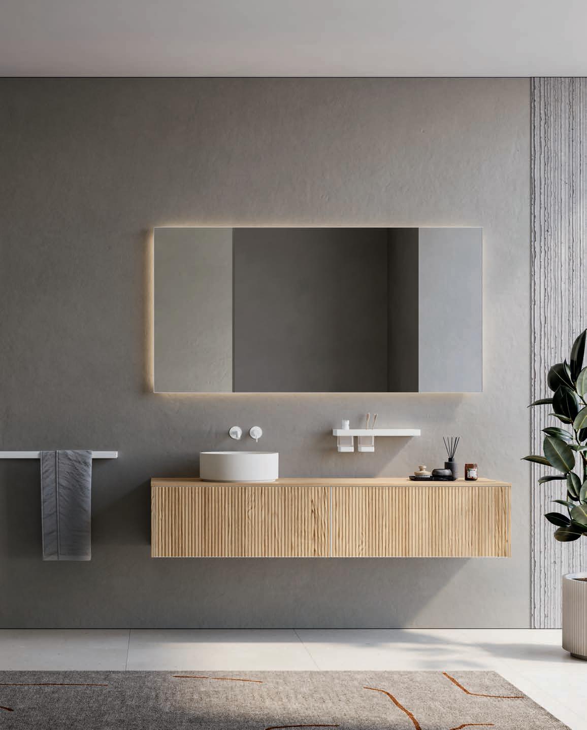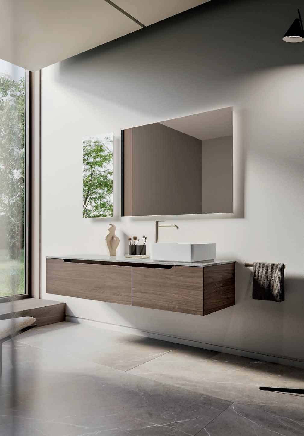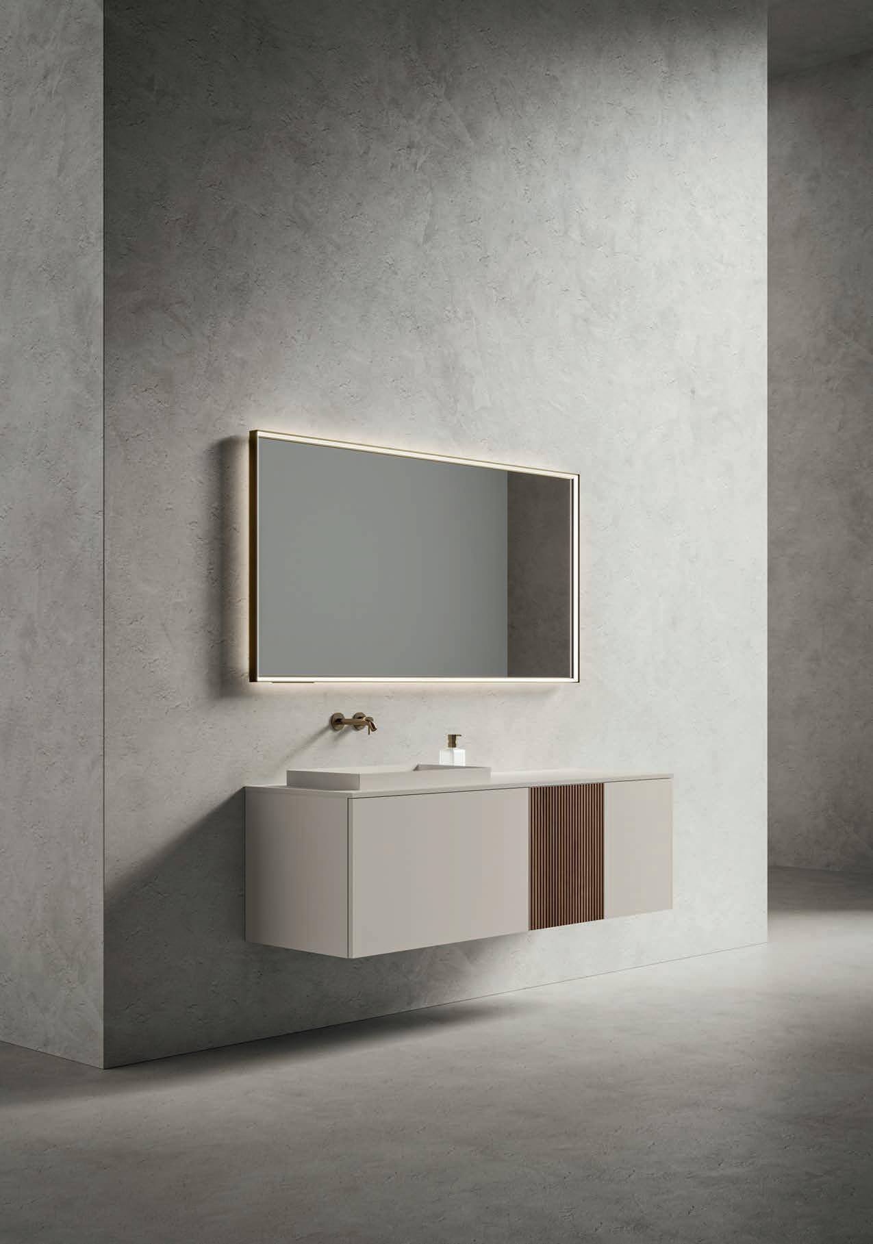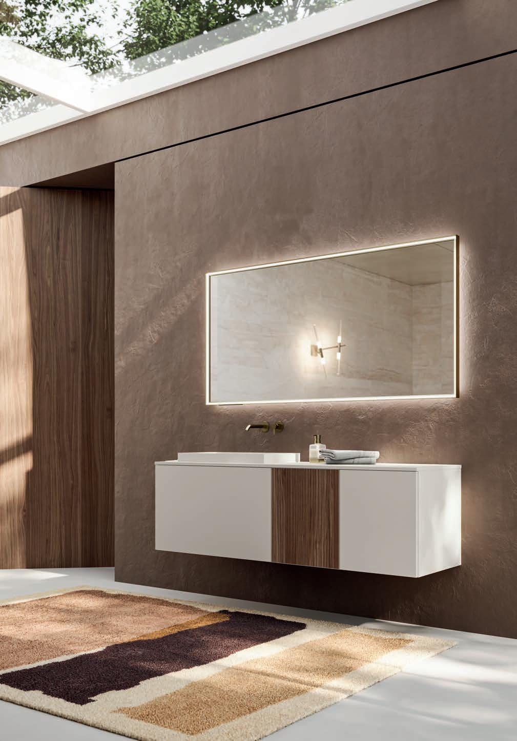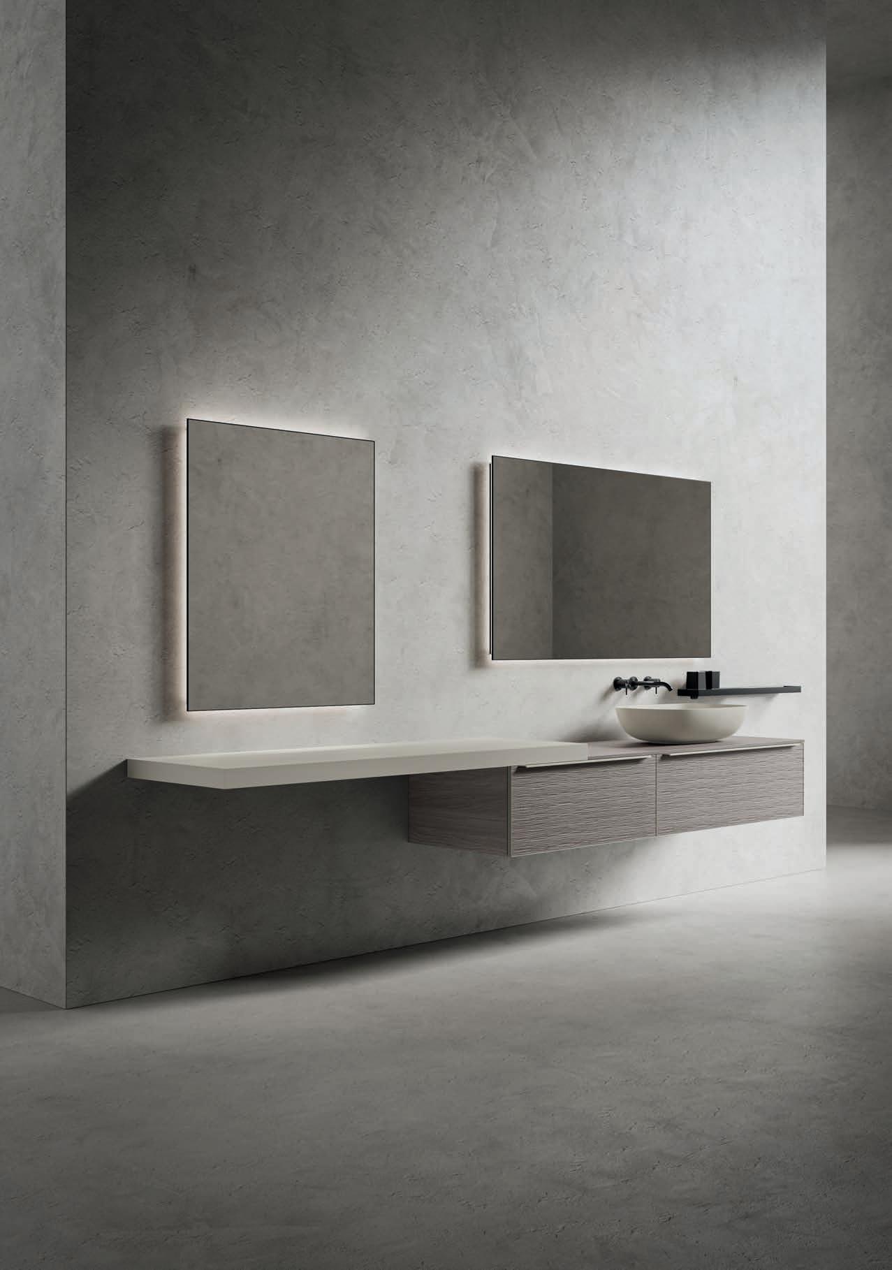 - PIRANO EVO, PIRANO, SPALATO, ZARA, LISSA, LISSA MX,MAGGIORE and TENNO mirrors to be combined with the same finishes of cabinets and worktops, GIOTTO, TIZIANO integrated washbasins and tabletop washbasins in mineral marble.