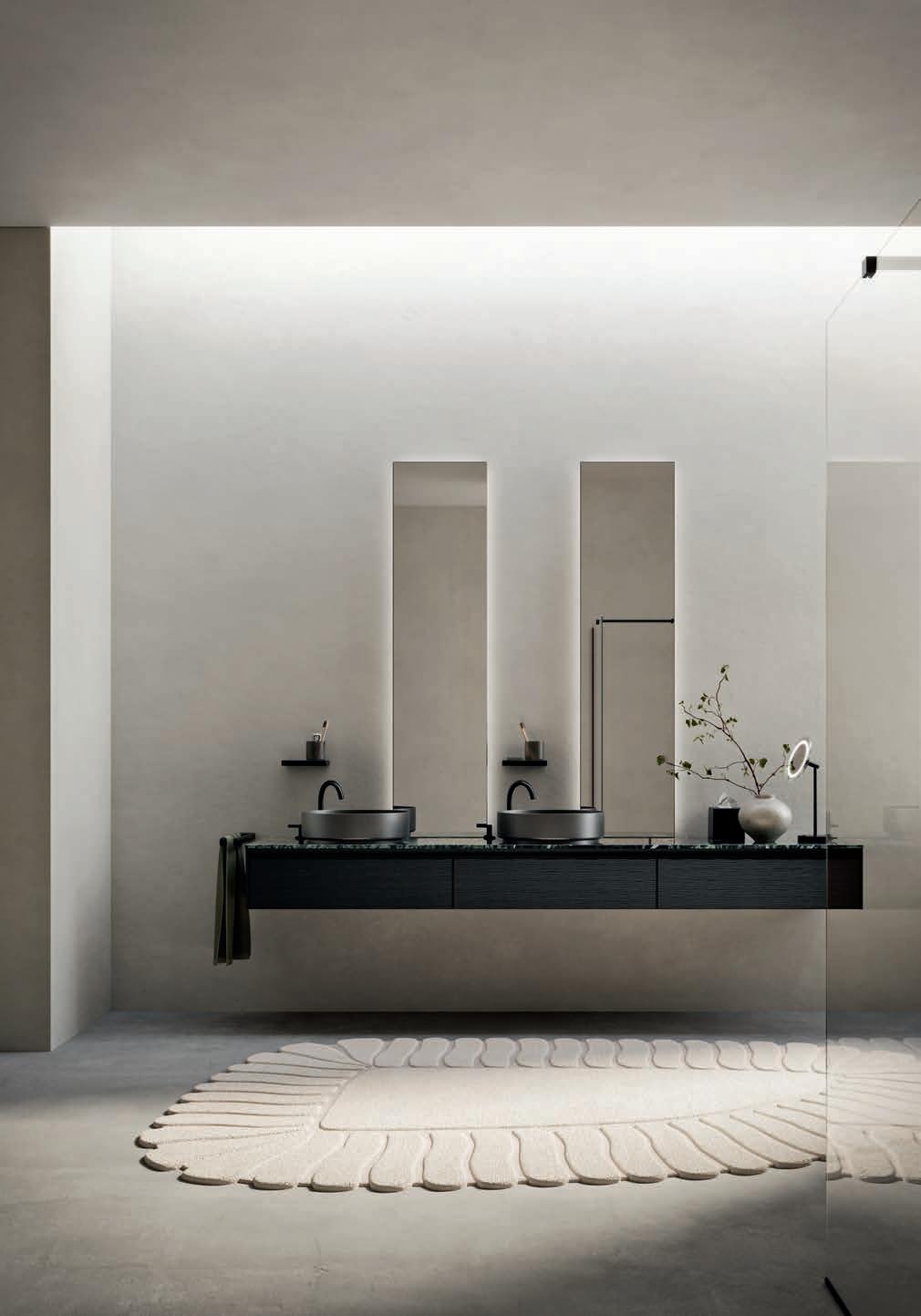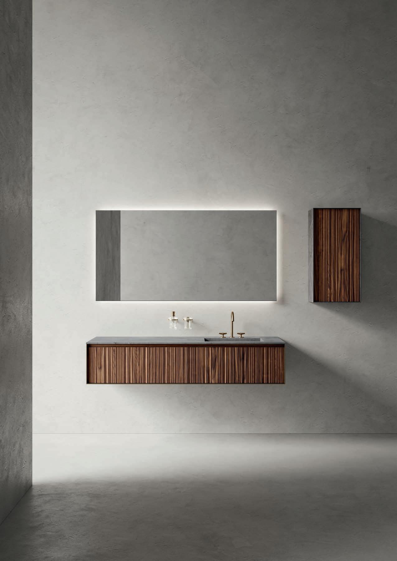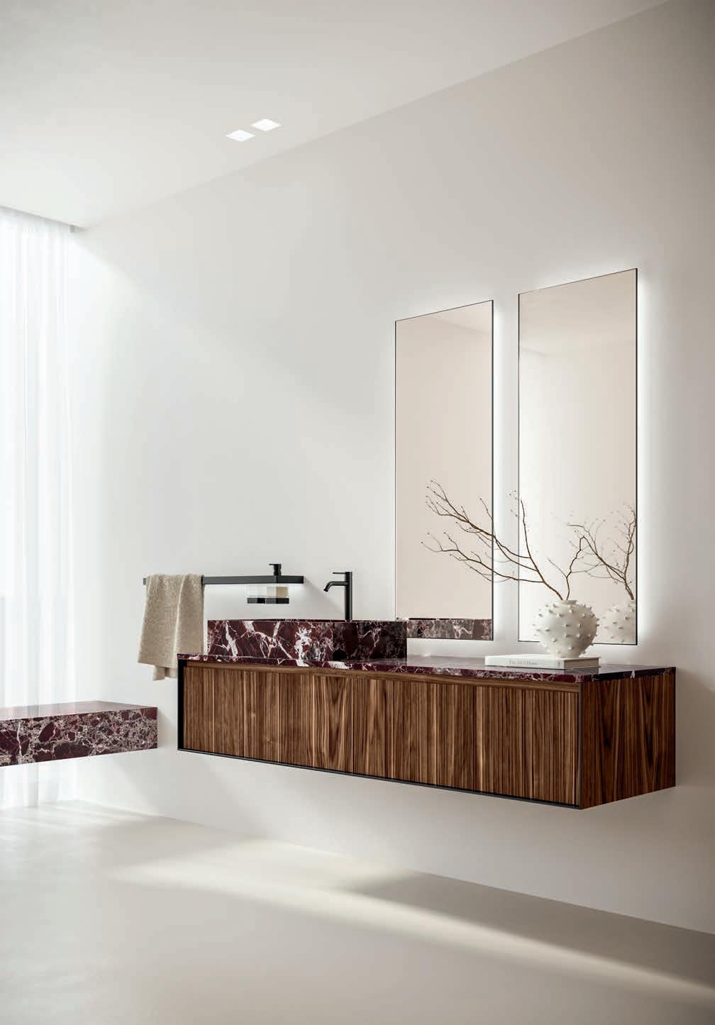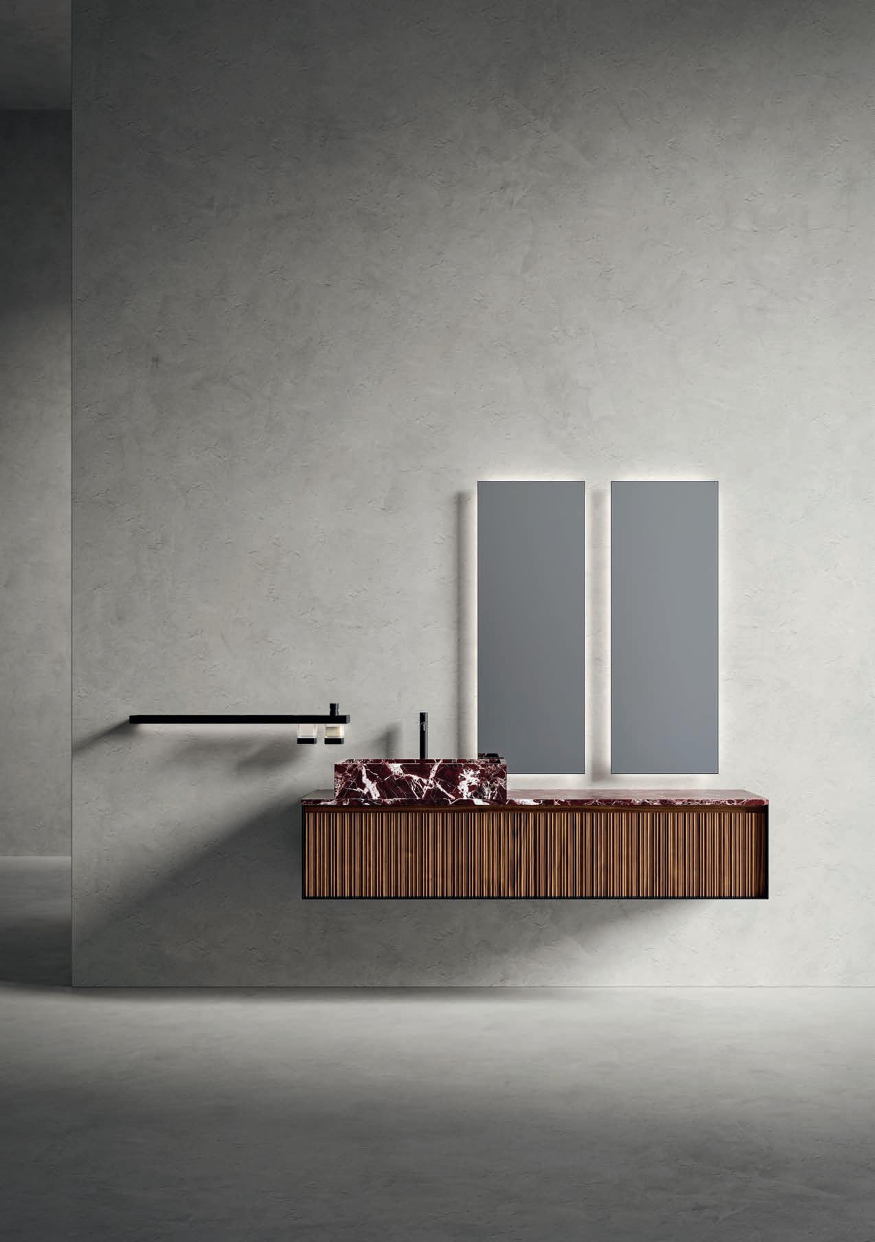 - PIRANO EVO, PIRANO, SPALATO, ZARA, LISSA, LISSA MX,MAGGIORE and TENNO mirrors to be combined with the same finishes of cabinets and worktops, GIOTTO, TIZIANO integrated washbasins and tabletop washbasins in mineral marble.