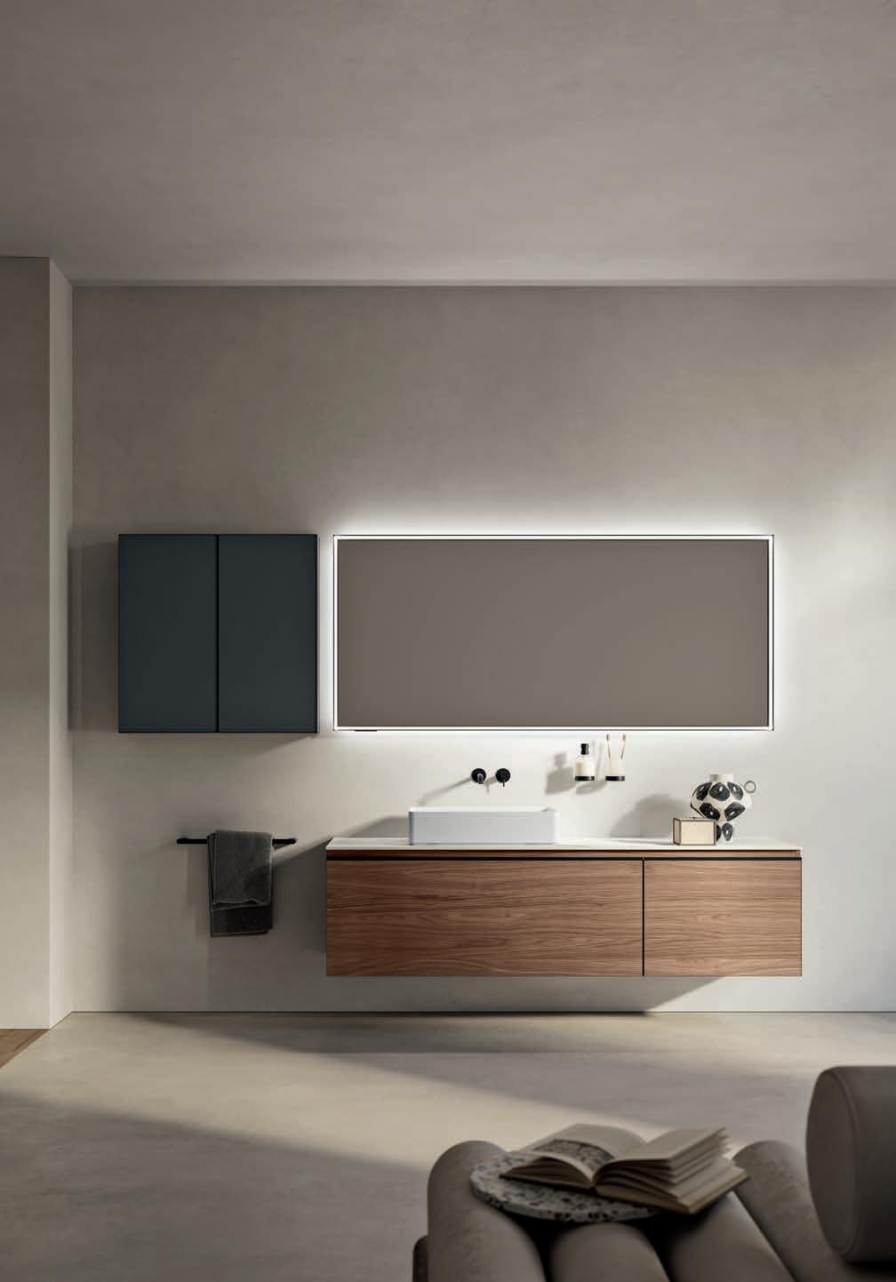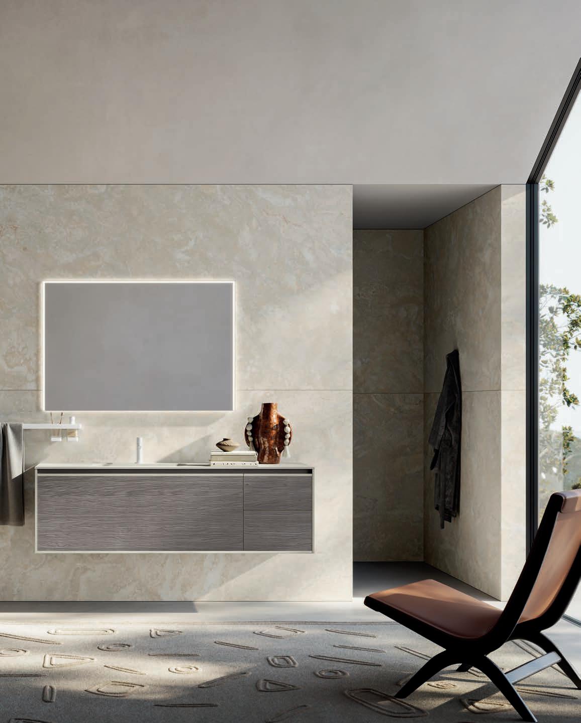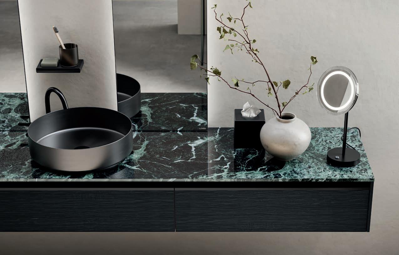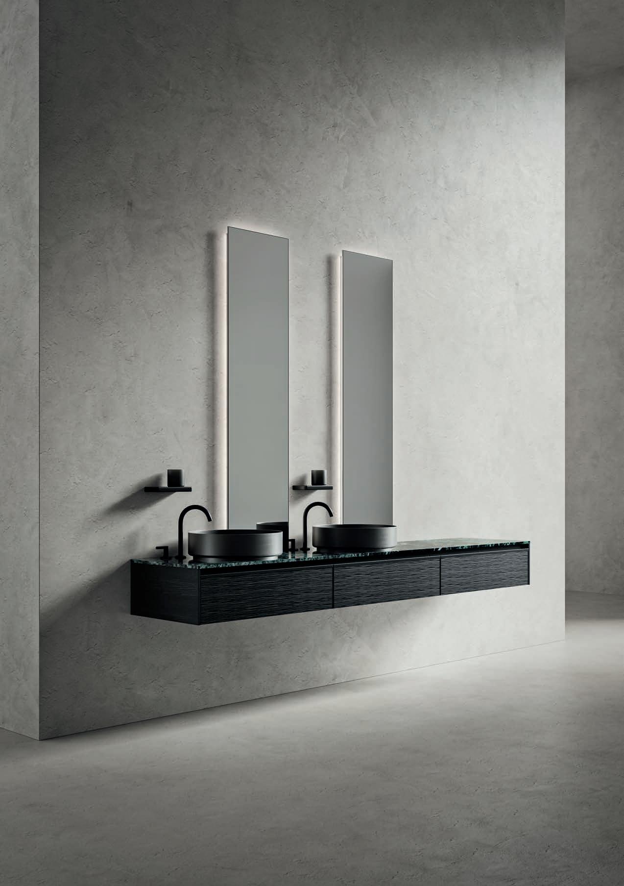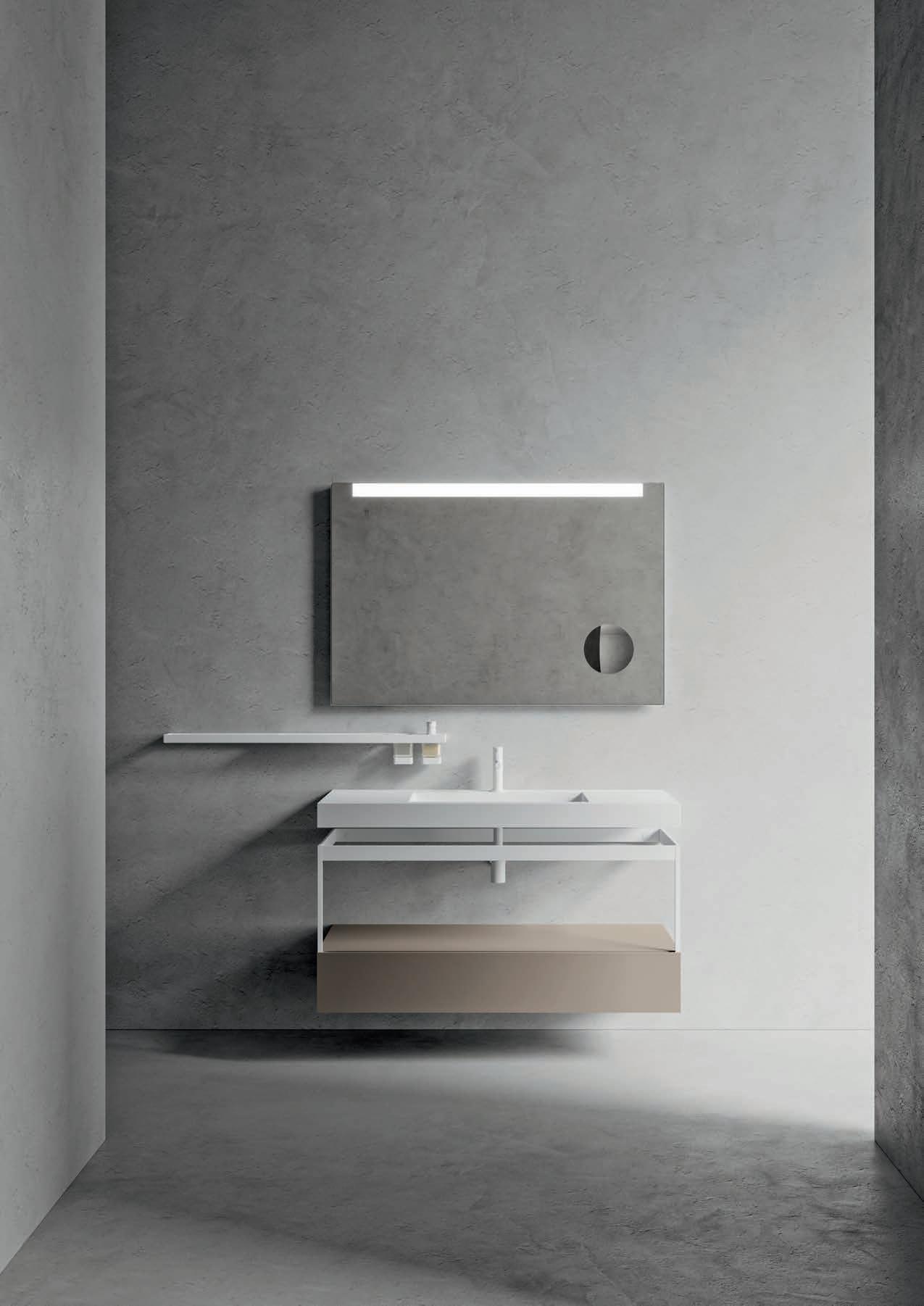 - PIRANO EVO, PIRANO, SPALATO, ZARA, LISSA, LISSA MX,MAGGIORE and TENNO mirrors to be combined with the same finishes of cabinets and worktops, GIOTTO, TIZIANO integrated washbasins and tabletop washbasins in mineral marble.