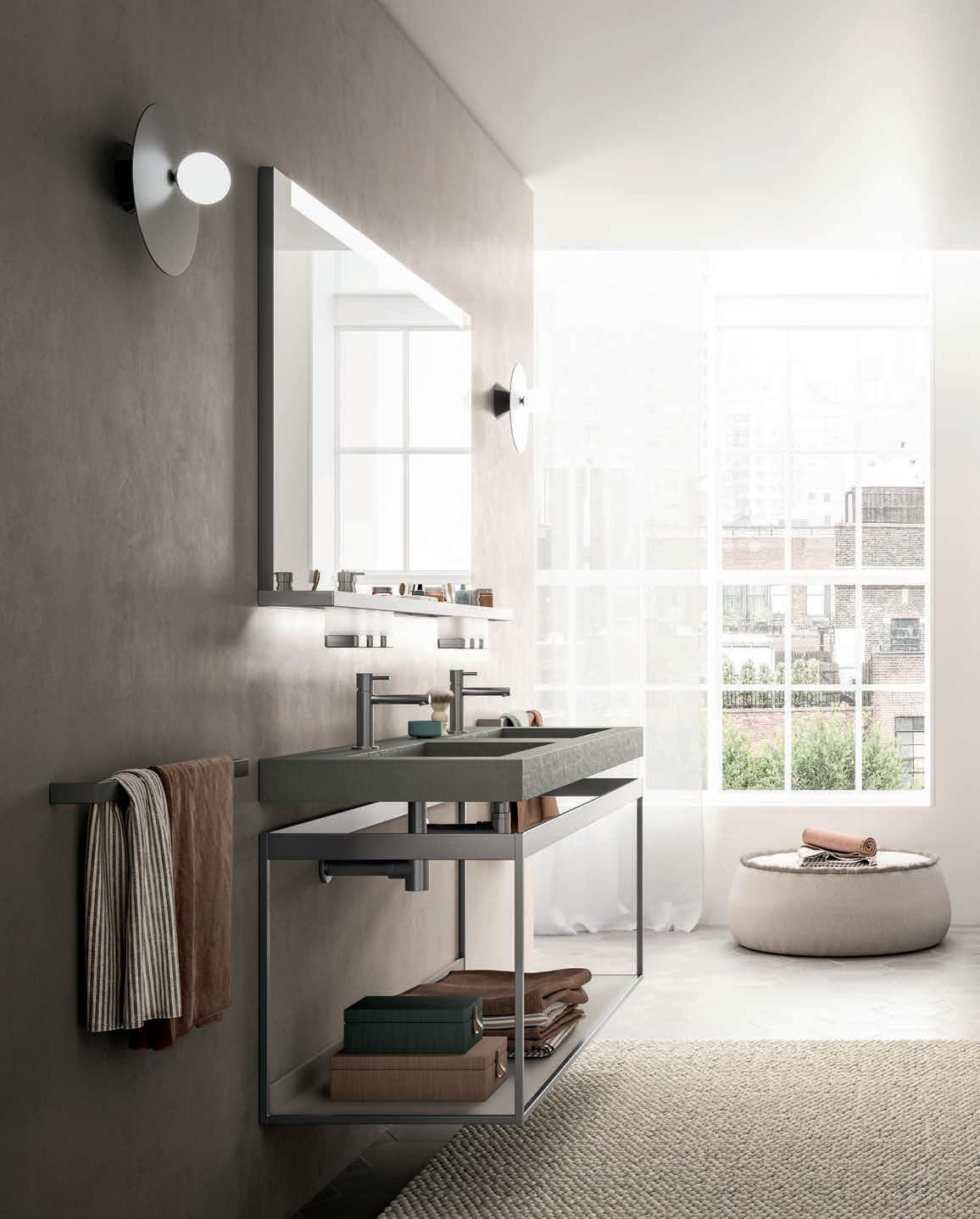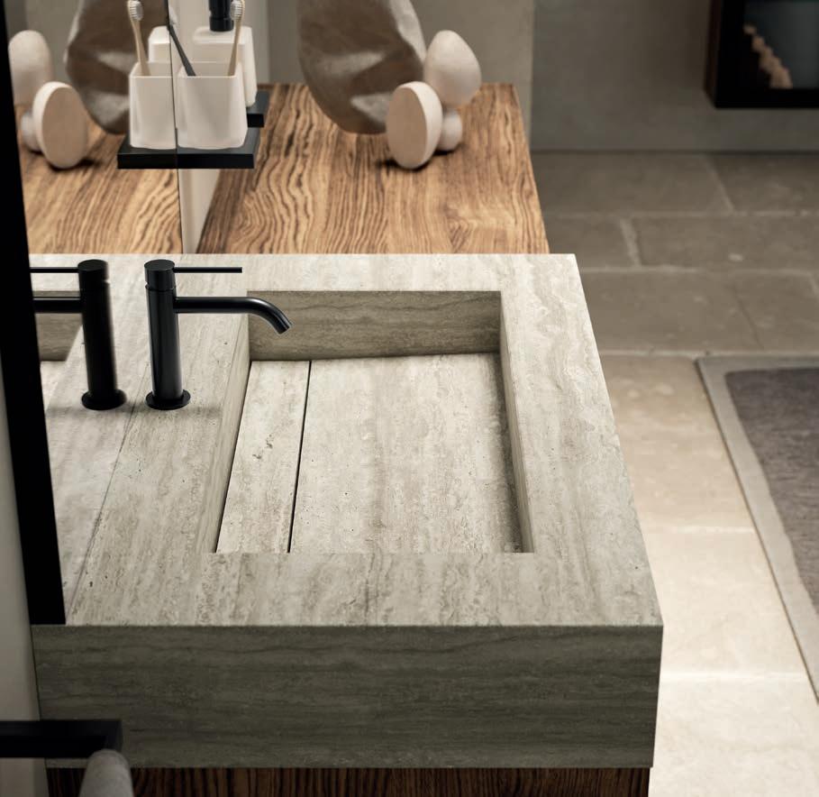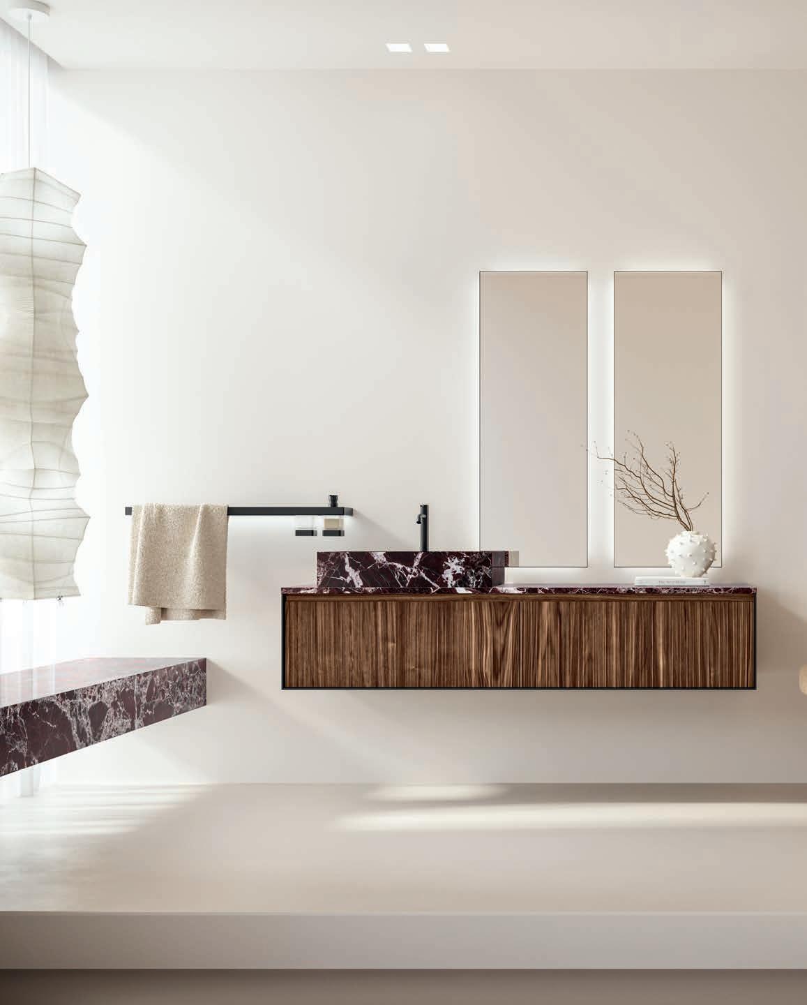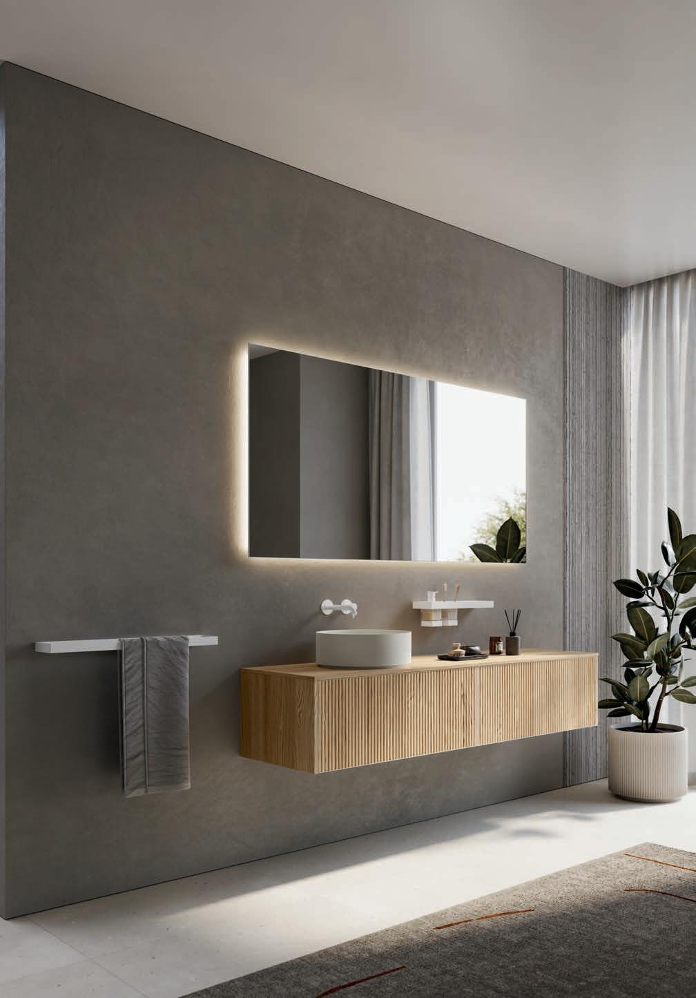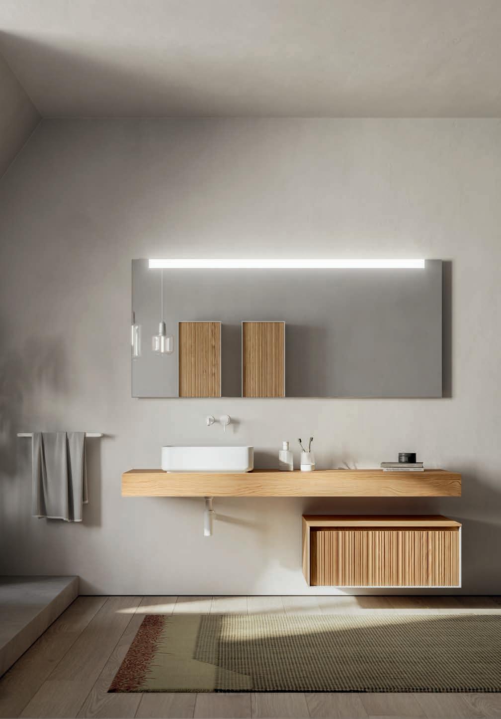 - PIRANO EVO, PIRANO, SPALATO, ZARA, LISSA, LISSA MX,MAGGIORE and TENNO mirrors to be combined with the same finishes of cabinets and worktops, GIOTTO, TIZIANO integrated washbasins and tabletop washbasins in mineral marble.