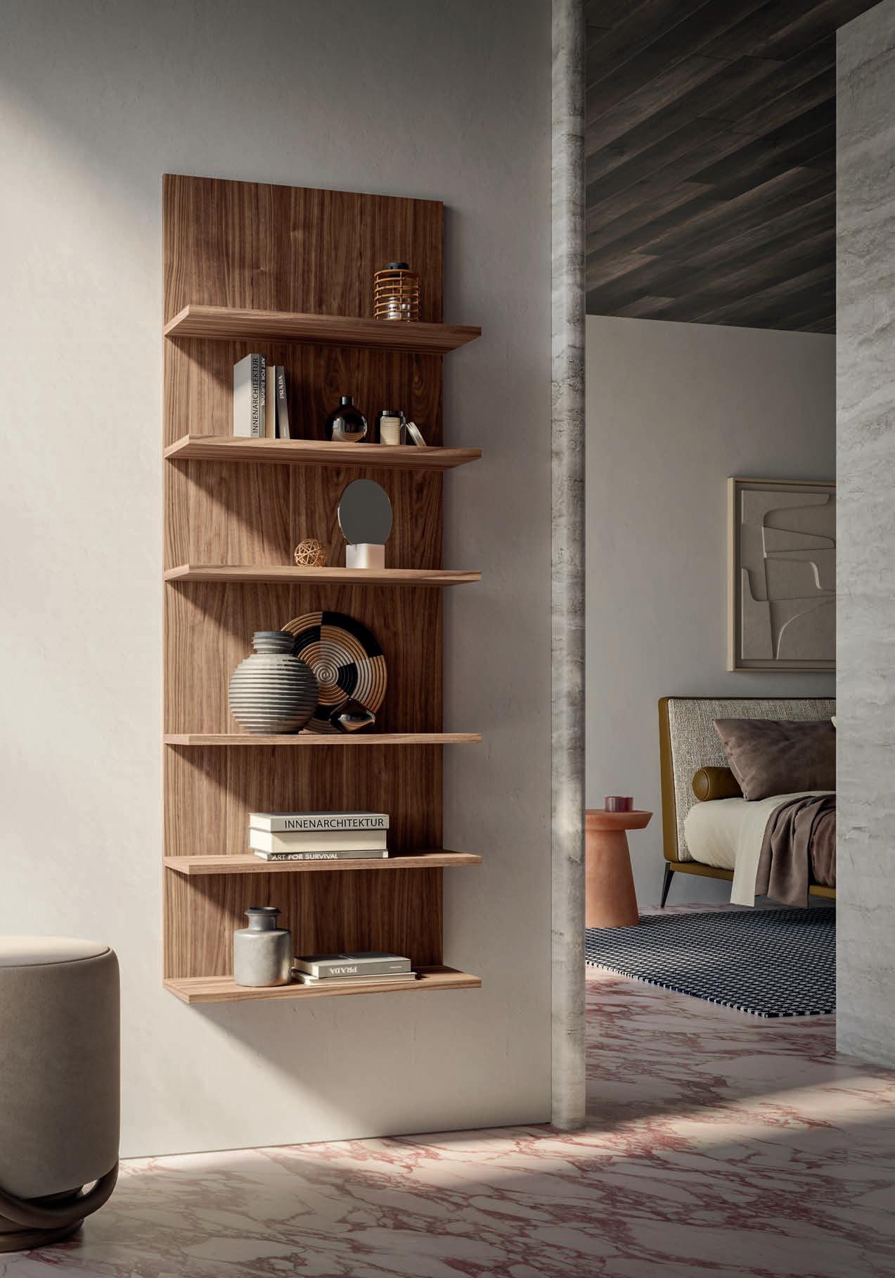 Columns with Progetto ALU doors and open compartments in Terra di Luna finish.