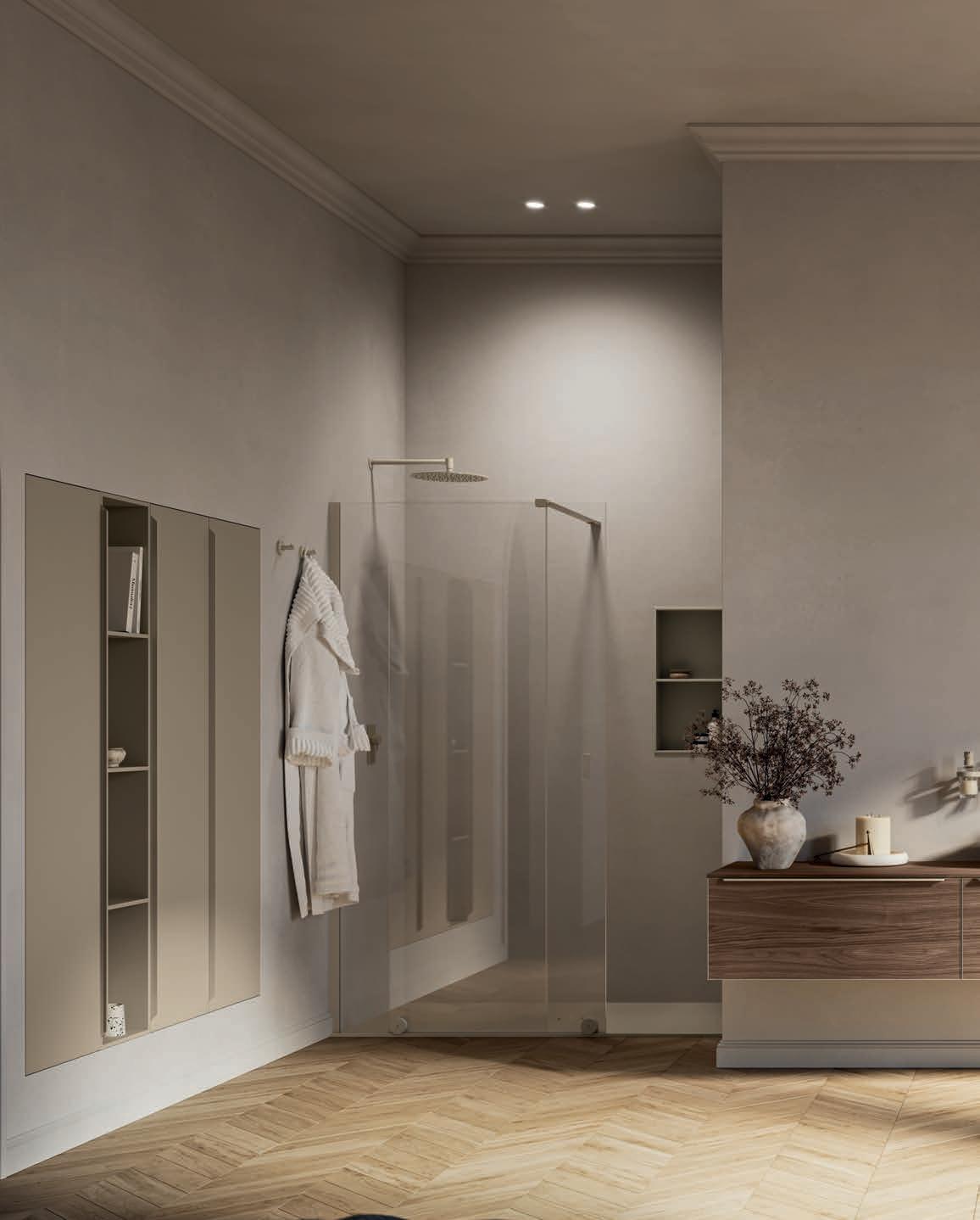 Walk-in Coulissante con scorrimenti a vista dal design essenziale, nella finitura Terra di Luna.