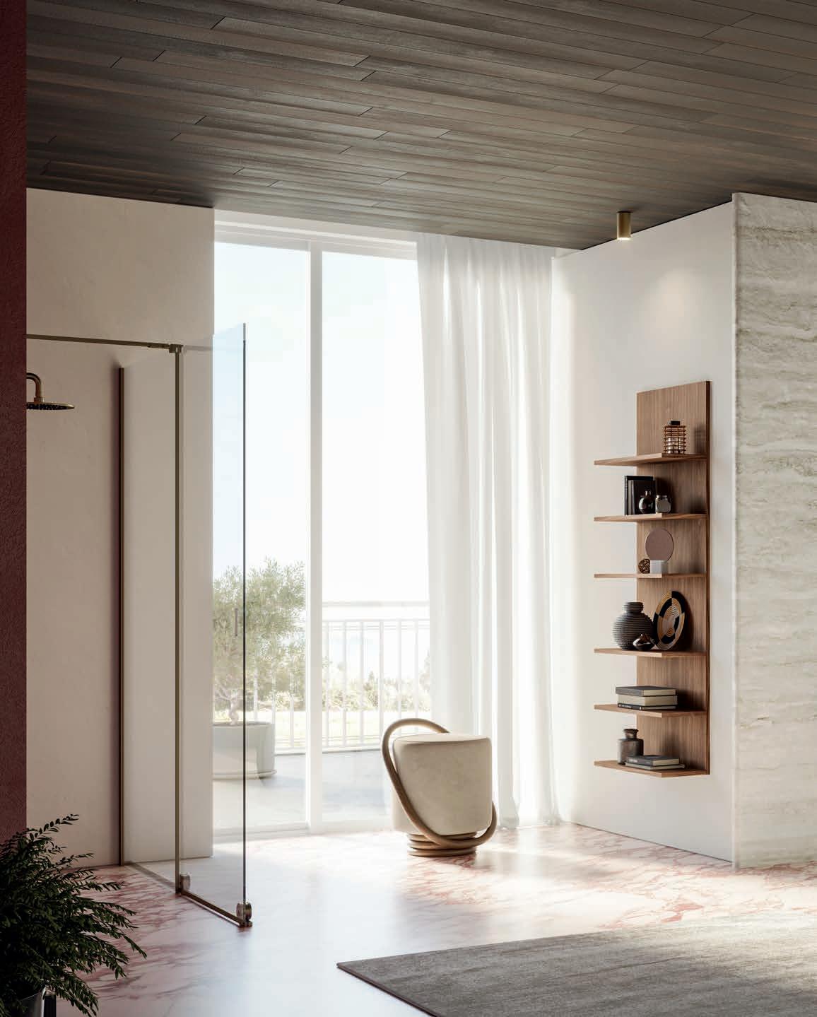 Walk-in Coulissante avec rails apparents et design essentiel, dans la finition Terra di Luna.