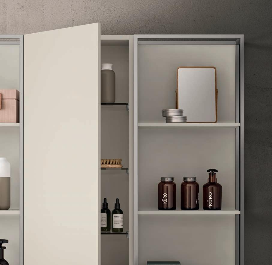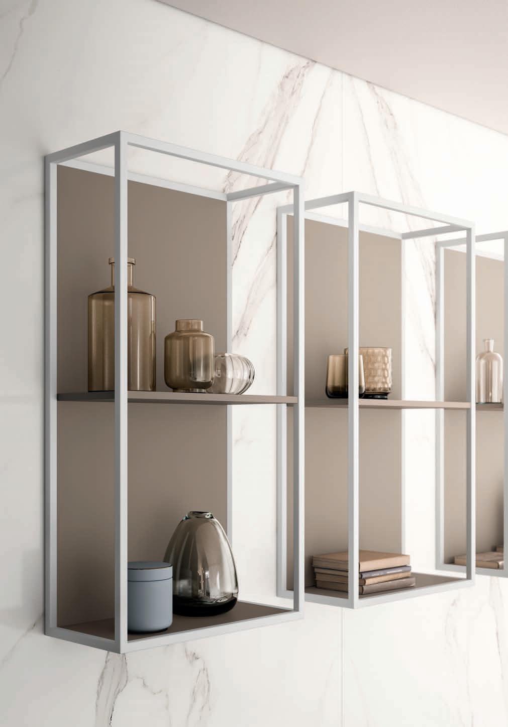 Colonne con anta Progetto ALU e vani a giorno in finitura Terra di Luna.