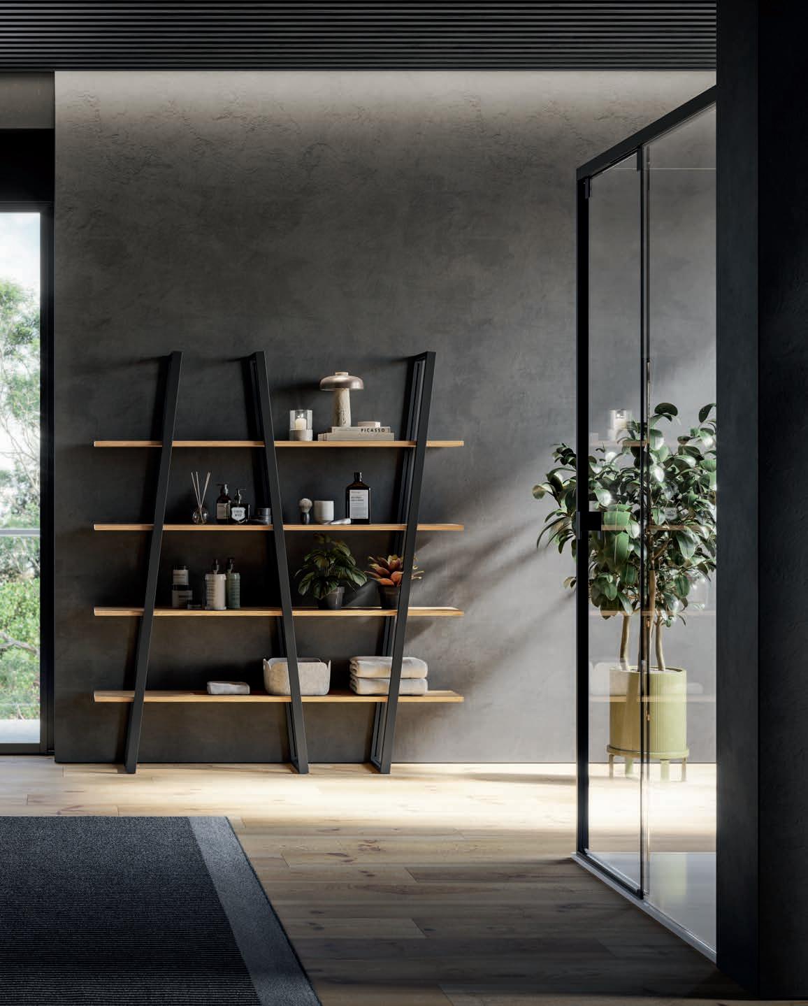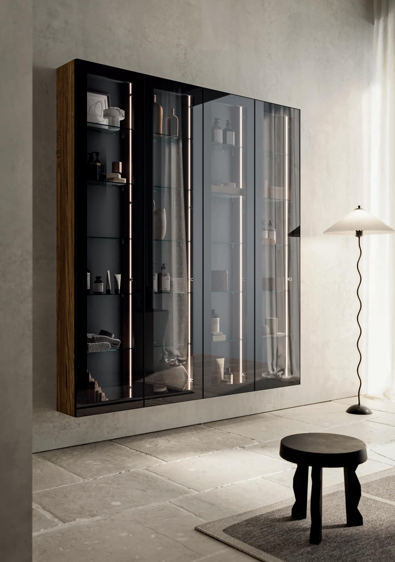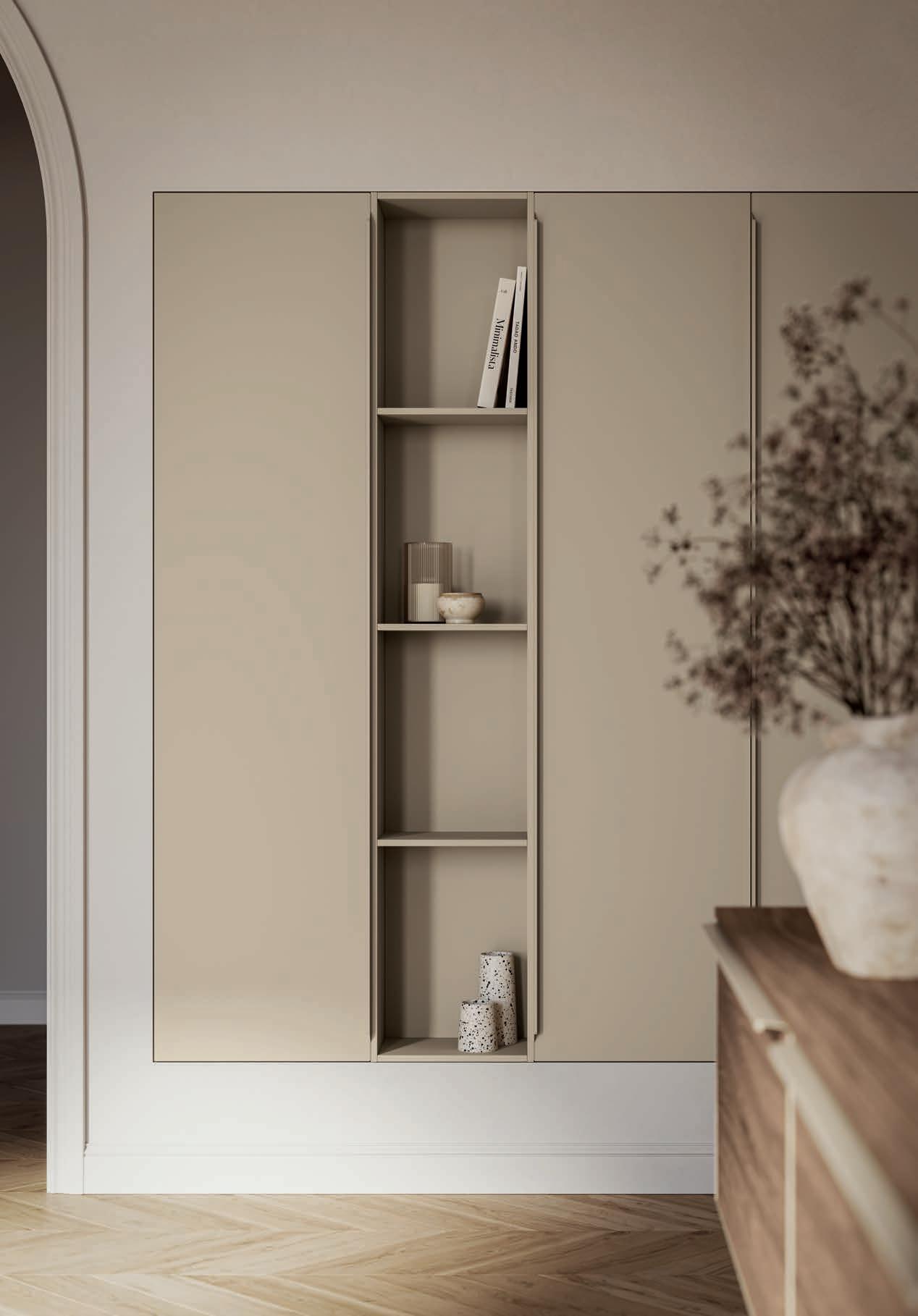 Colonnes avec portes Progetto ALU et niches ouvertes en finition Terra di Luna.