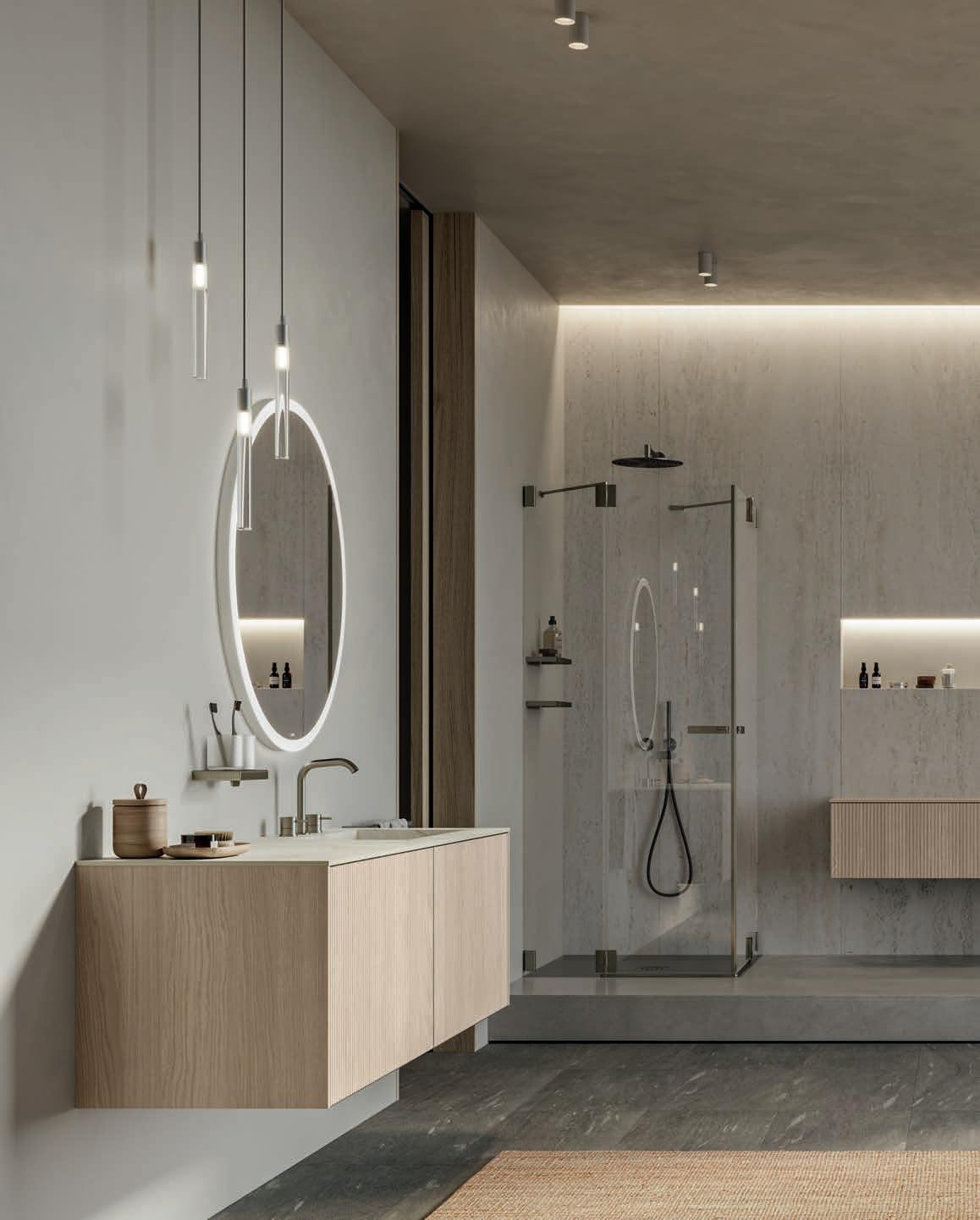 Divo, avec sa façade sculptée et sa personnalité affirmée. Indissima définit la vision Total Bathroom, où structures, accessoires et parois de douche se fondent dans une harmonie parfaite.