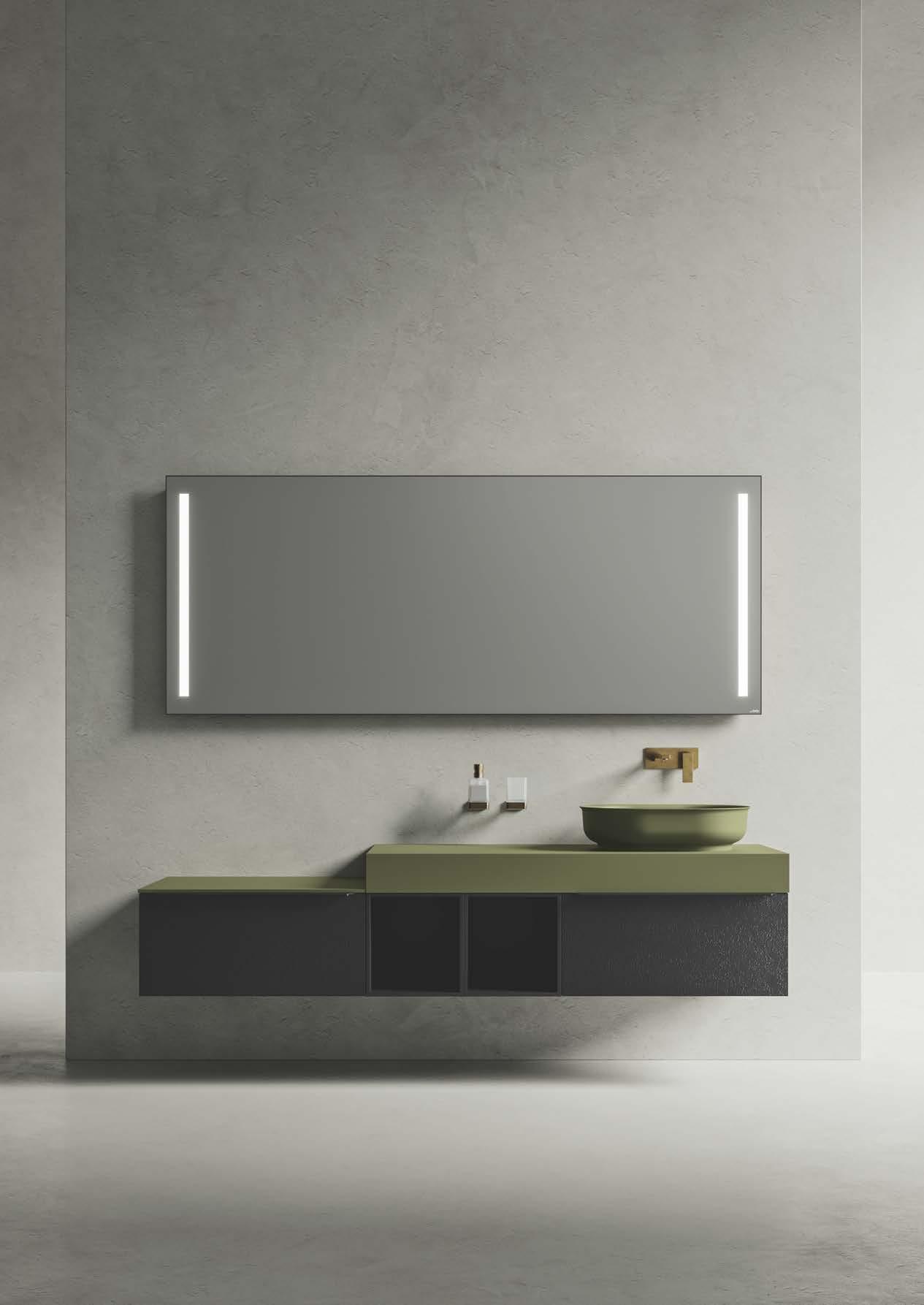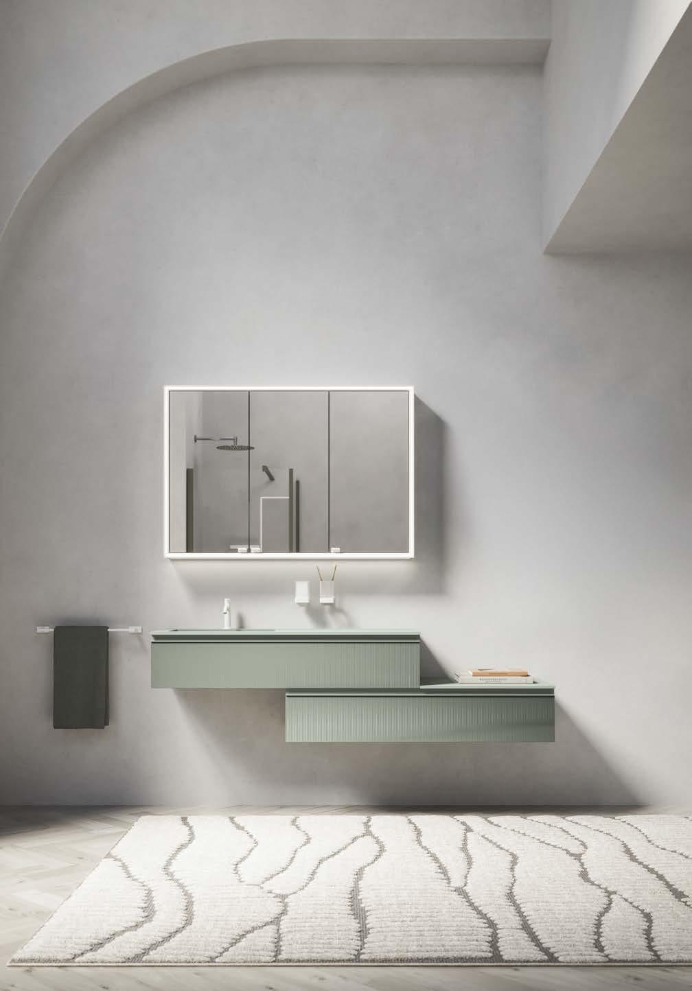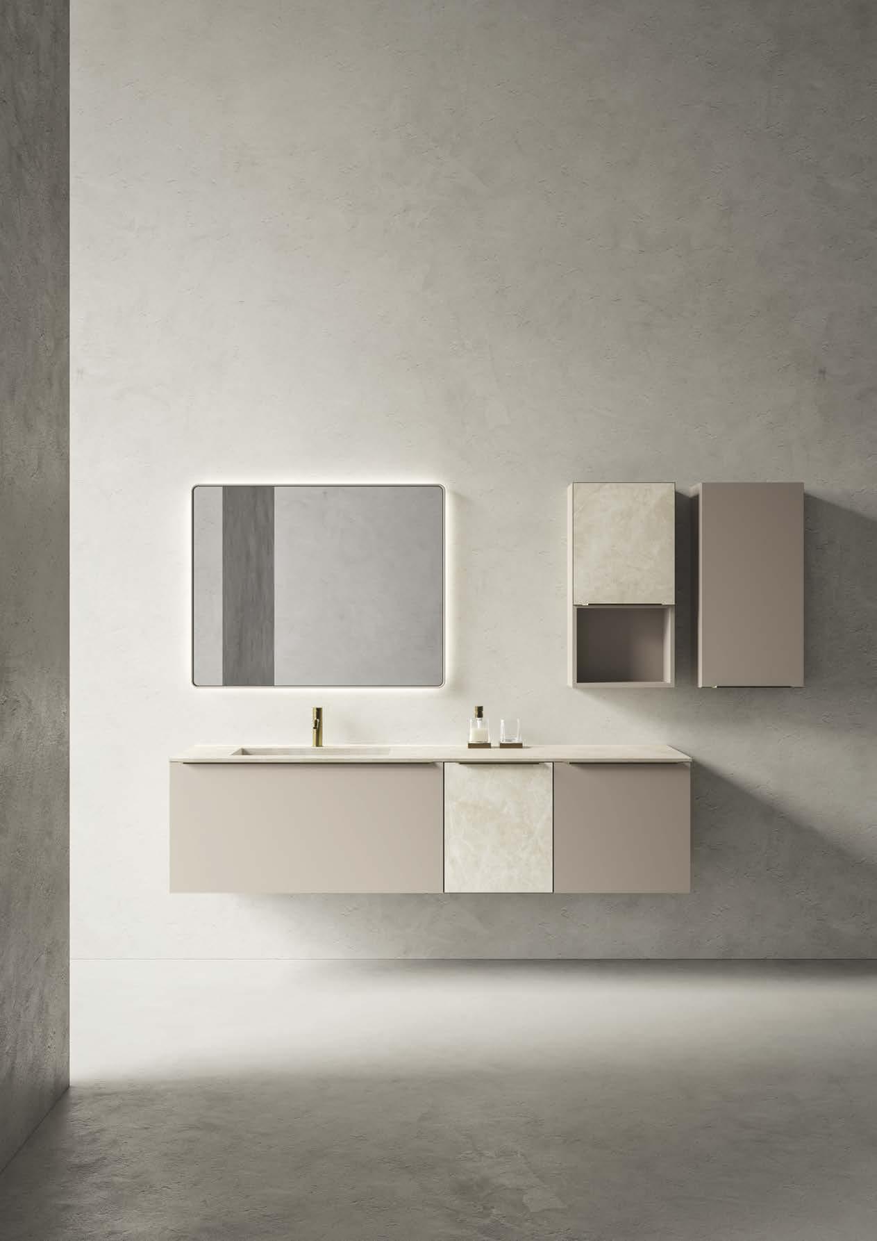 - PIRANO EVO, PIRANO, SPALATO, ZARA, LISSA, LISSA MX,MAGGIORE and TENNO mirrors to be combined with the same finishes of cabinets and worktops, GIOTTO, TIZIANO integrated washbasins and tabletop washbasins in mineral marble.