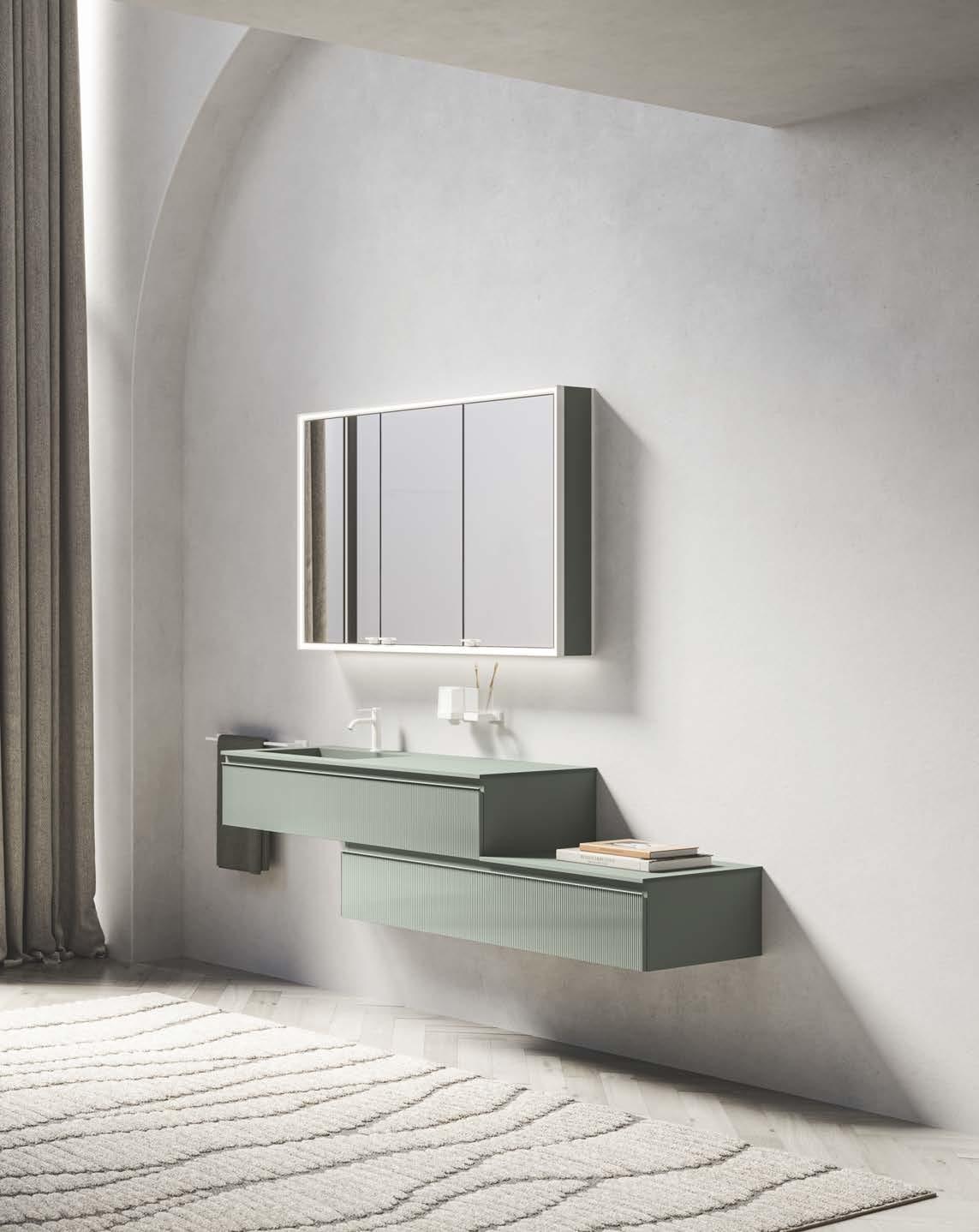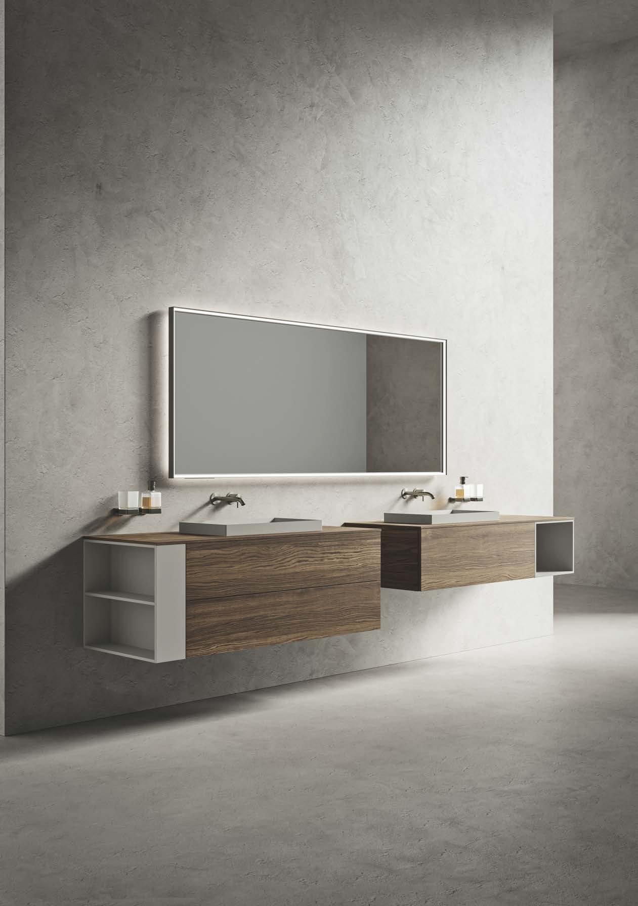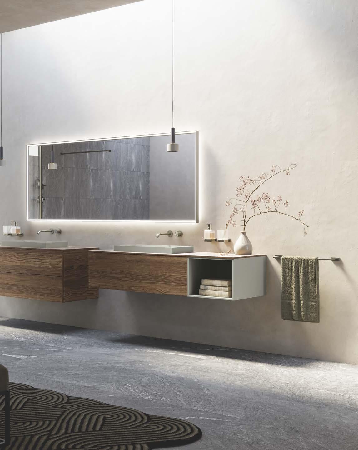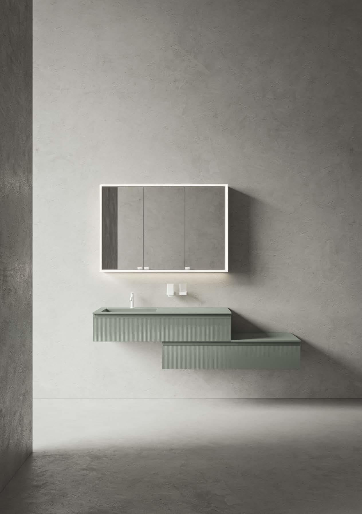 - PIRANO EVO, PIRANO, SPALATO, ZARA, LISSA, LISSA MX,MAGGIORE and TENNO mirrors to be combined with the same finishes of cabinets and worktops, GIOTTO, TIZIANO integrated washbasins and tabletop washbasins in mineral marble.