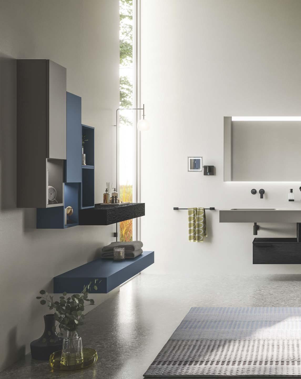 Inda propone un’unica soluzione cromatica per tutta la stanza da bagno, con colori opachi selezionati per:
