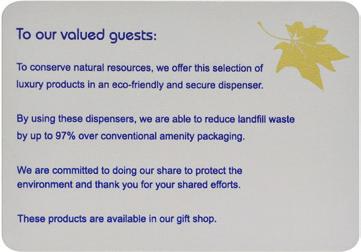 Many customers choose to customomize their EcoEclipse shower dispensers to support their brand. Check out some of the exiting EcoEclipse shower dispenser designs we’ve developed for properties around the world.